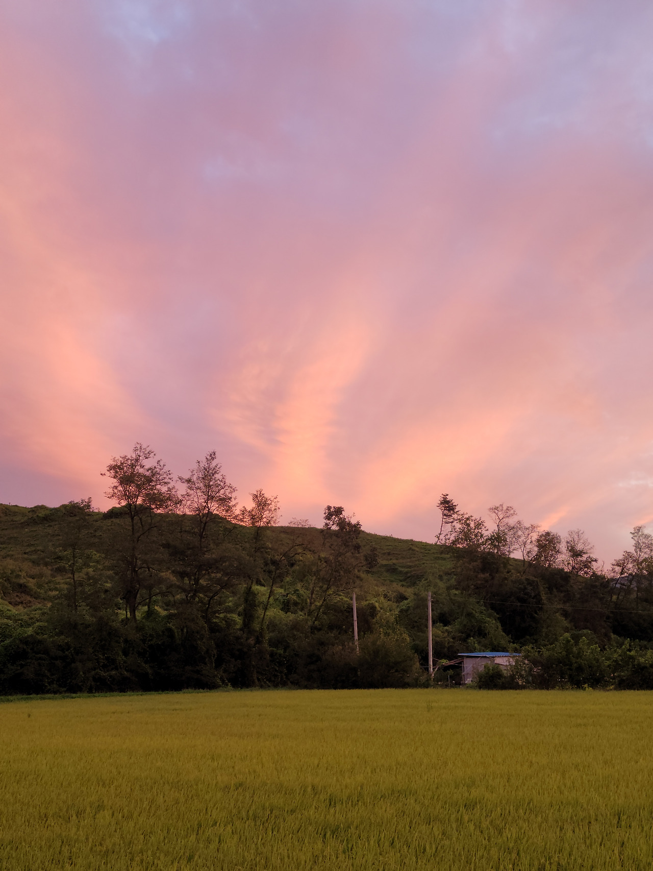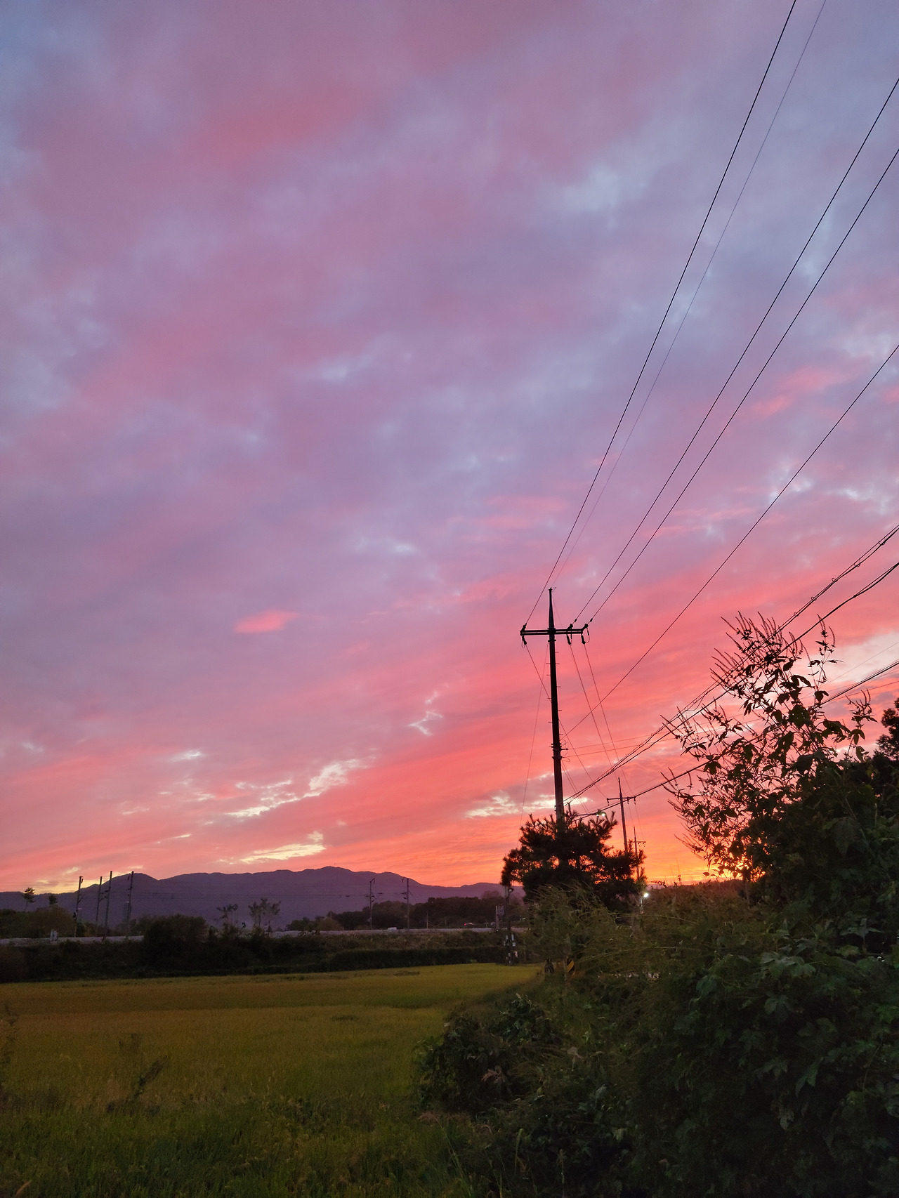 여름이 지나며 들판의 벼들이 익어갈 무렵 서쪽 하늘이다. 해가 넘어가고 온통 붉게 물든 서녘하늘이다.