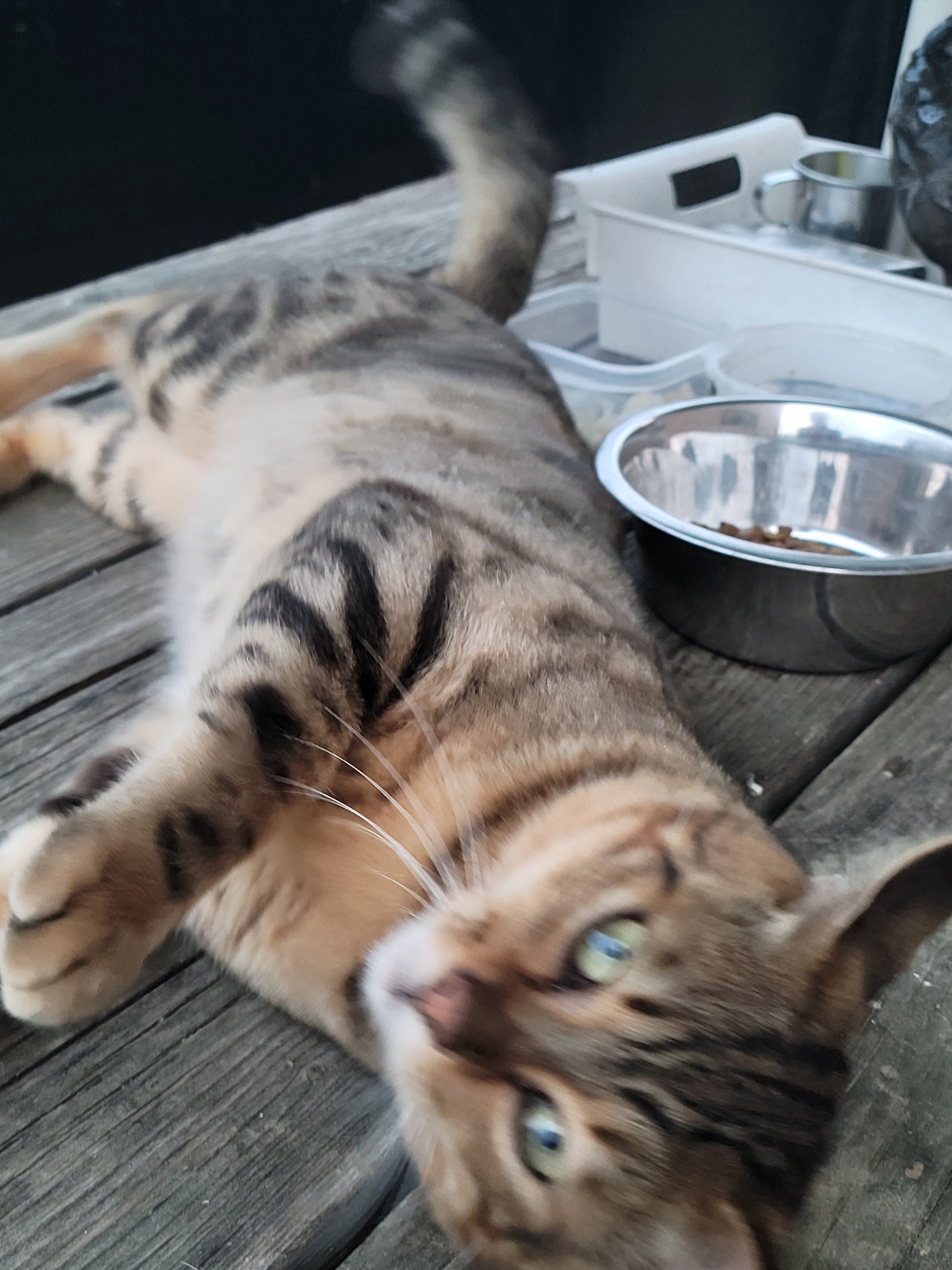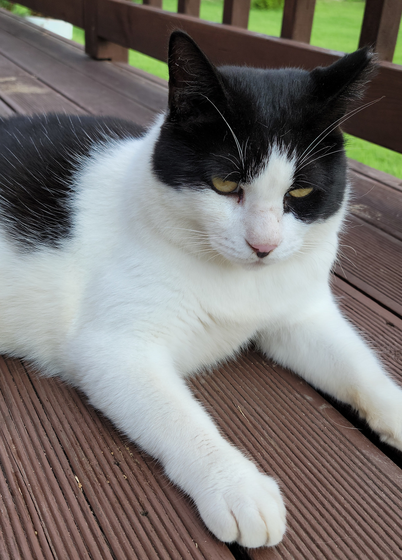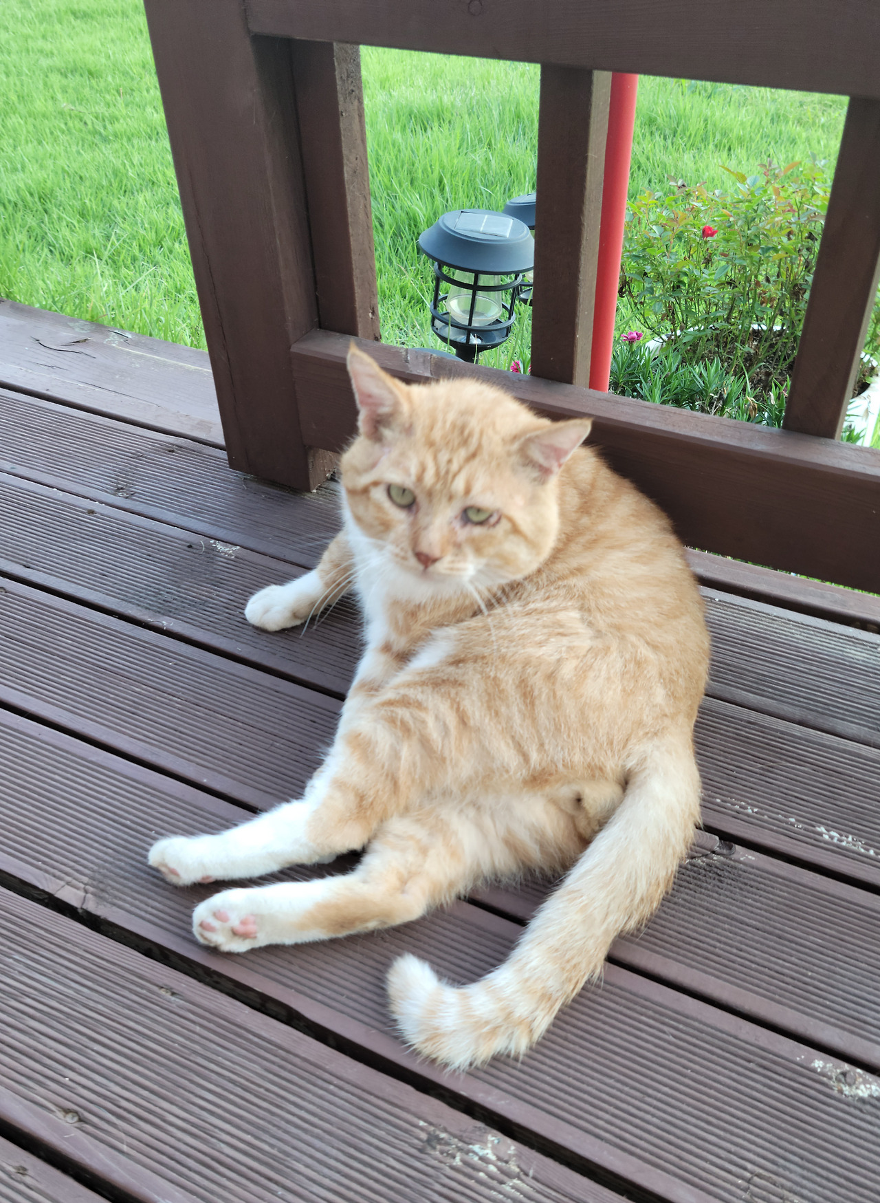 가장 미스터리 한 아이입니다. 치즈 2호는 데크의 오른쪽을 차지하고 거기서 밥을 먹고 쉬고 터를 잡은