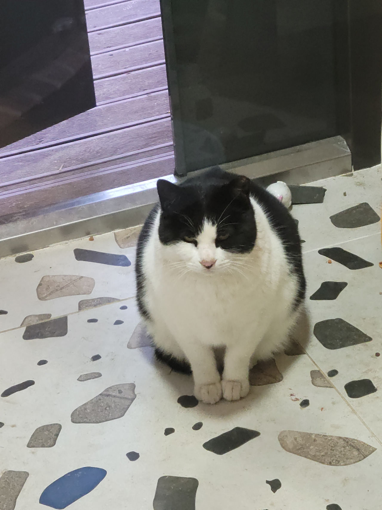 새벽에 현관 쪽으로 와서 밥을 먹으려 하다 보니 이 구역 왕 턱시도와 부딪히게 되는 것 같습니다