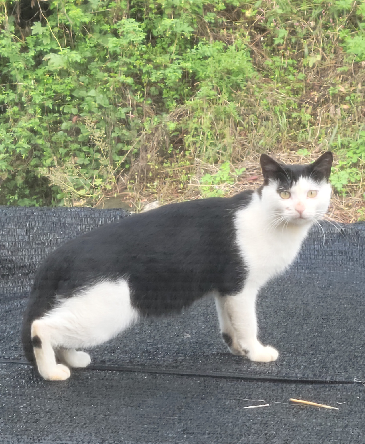 이 아이는 '턱시도 2호'인데, 어느 날 데크 밑에서 나와 눈이 마주쳐 발견이 된 아이인데 밥을 주려하니 도망가버리고 그 후에는 턱시도에 쫓겨 집 근처만 배회합니다. 멀리 있어 사진을 찍을 수 없었는데 요즘 자두네 집 지붕 위로 와서는 밥 달라는 듯 있거나 눈치를 보다가 나를 보면 후다닥 도망가는 아이인데 며칠 전부터 자주 나타납니다. 그런데 신기한 건 이 아이는 자두네 집 테이블 위에서 호피와 같이 있는 걸 목격하기도 했는데 두 애들은 싸우지 않는 모양입니다. 대개 고양이들은 영역 동물이기에 새로운 애가 나타나는 걸 방어하는데 호피가 성격이 좋거나 둘인 이미 친한 사이거나... 아무튼 호피 밥을 먹기도 합니다.