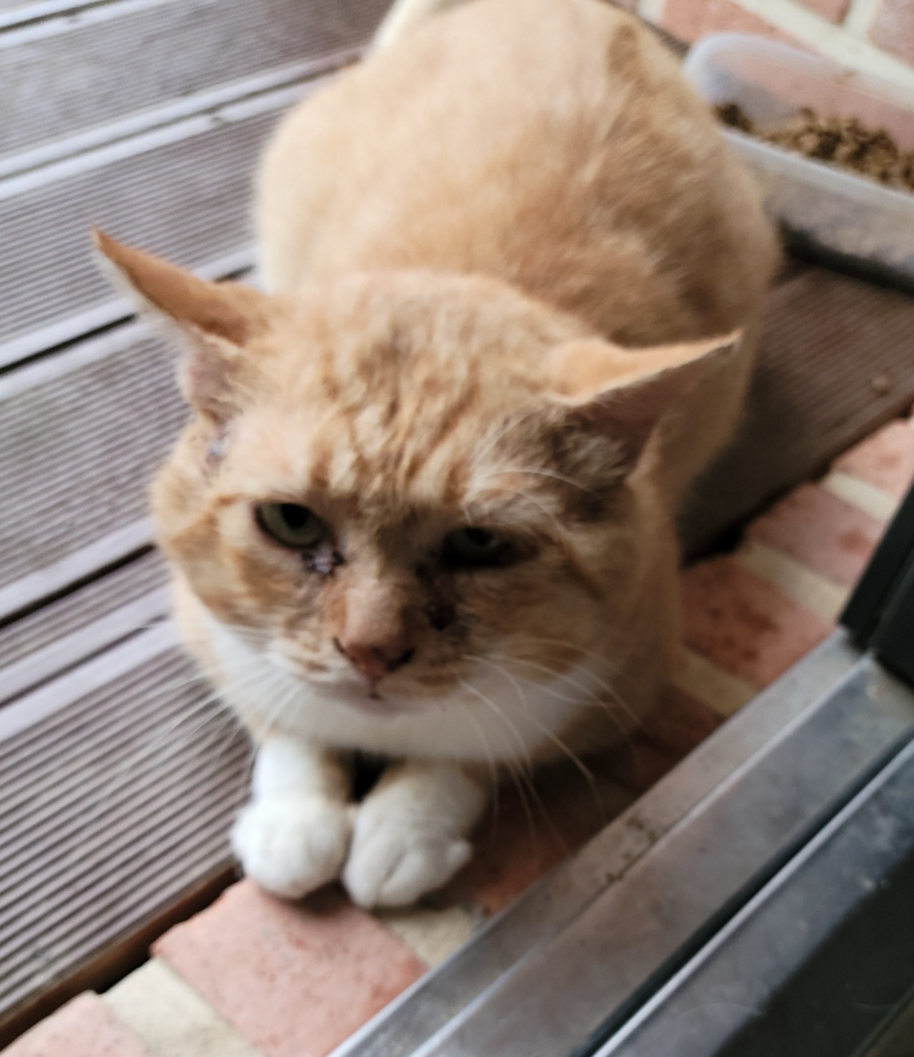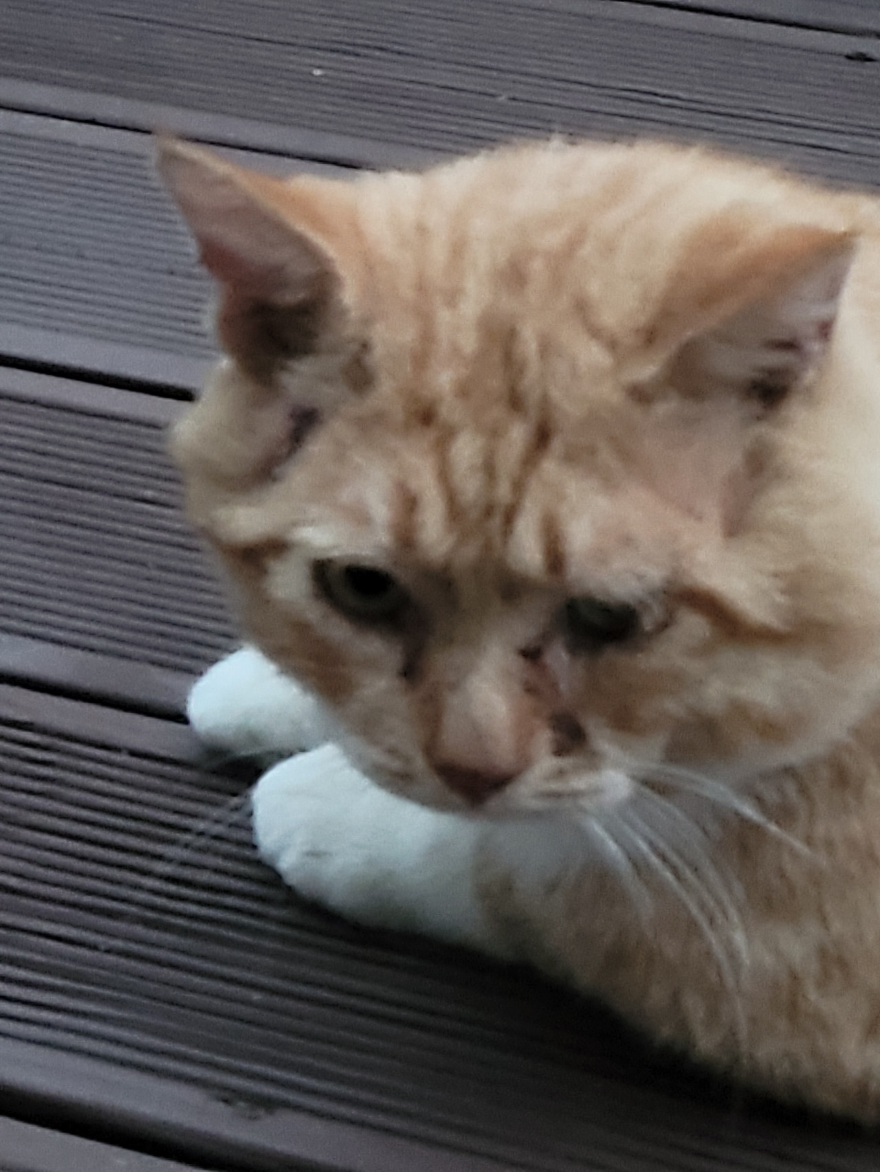 어느 날부터 데크 위에서 턱시도와 공생을 하는 치즈 1호, 건강상태가 좋아 보이지 않고 얼굴엔 상처와 눈곱이 늘 붙어 있습니다. 턱시도와 협공으로 다른 아이들의 접근을 막고 있고 때로는 턱시도와도 싸움을 하나 둘이는 사이가 좋아 보입니다. 턱시도가 보호해 주는 것 같기도 하고 이 아인 데크 위에서 사는 것 같습니다만 추운 겨울엔 어디로 갈지.... 이 아인 이제 내게 머리도 박고 비비고 합니다.