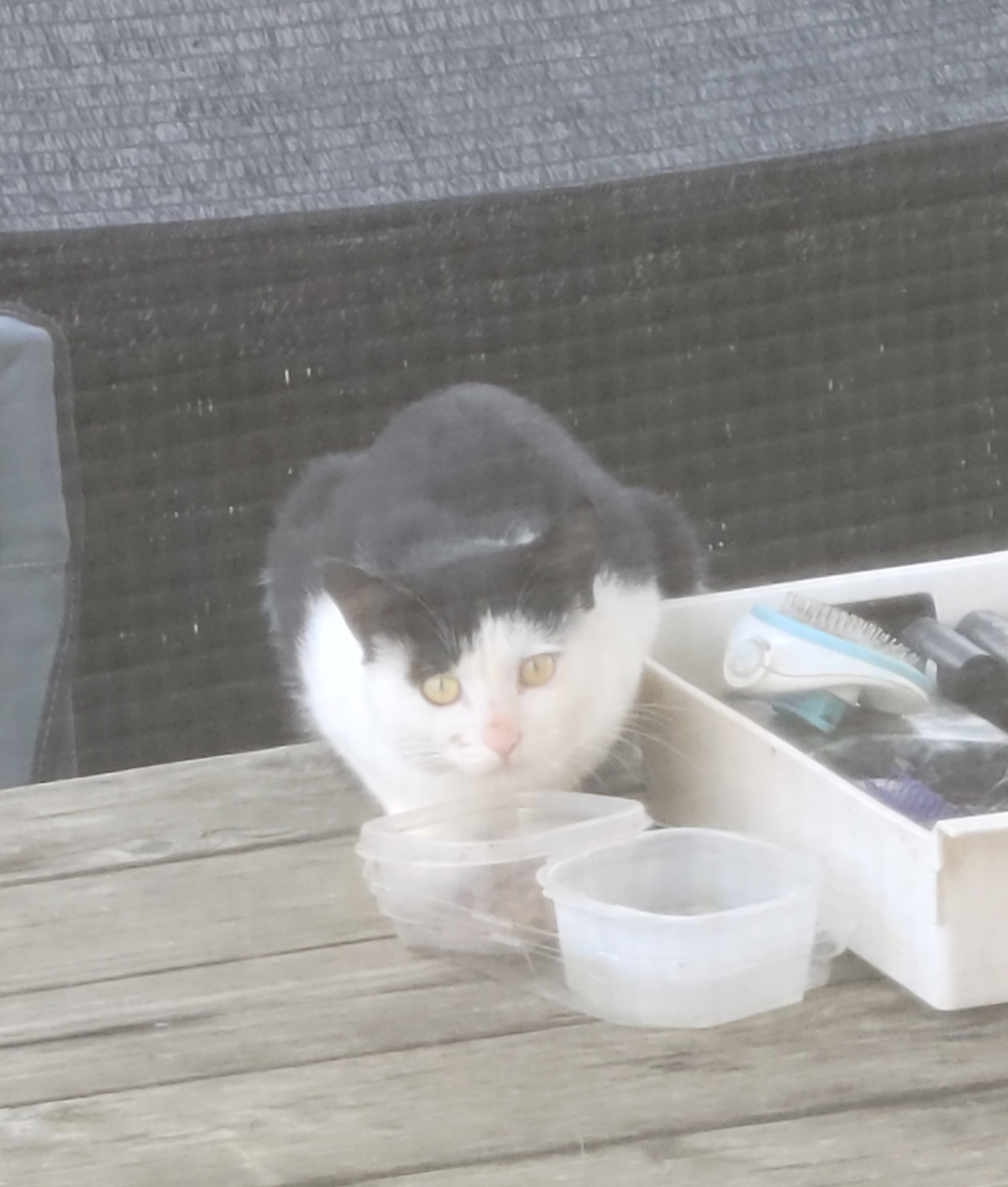 이 아이는 데크는 접근하지 못하고 턱시도의 눈치를 보며 용감하게 자두 우리에 있는 테이블을 영역으로 삼았습니다. 테이블 위에서 밥 먹고 쉬고 놀고... 턱시도에게 가끔 쫓겨나기도 하지만 테이블이 이 아이에겐 쉼터 겸 식당 겸 놀이터가 되었습니다. 자두와는 이젠 거의 호형호제(?)하는 것 같고 제 앞에서 배를 까고 뒤집고 자두에게도 배를 까보이는 등, 완전 개냥이가 되었고요... 이 앤 붙임성이 좋은 건지 작아서 먼저 쌈을 걸지 않는 건지.... 특별히 다른 아이들과 싸움을 하지 않고 여긴 다른 아이들도 드나들고 있습니다.