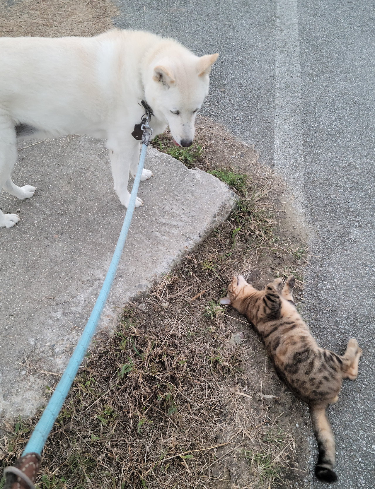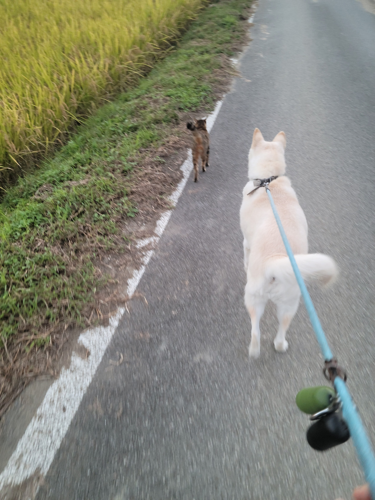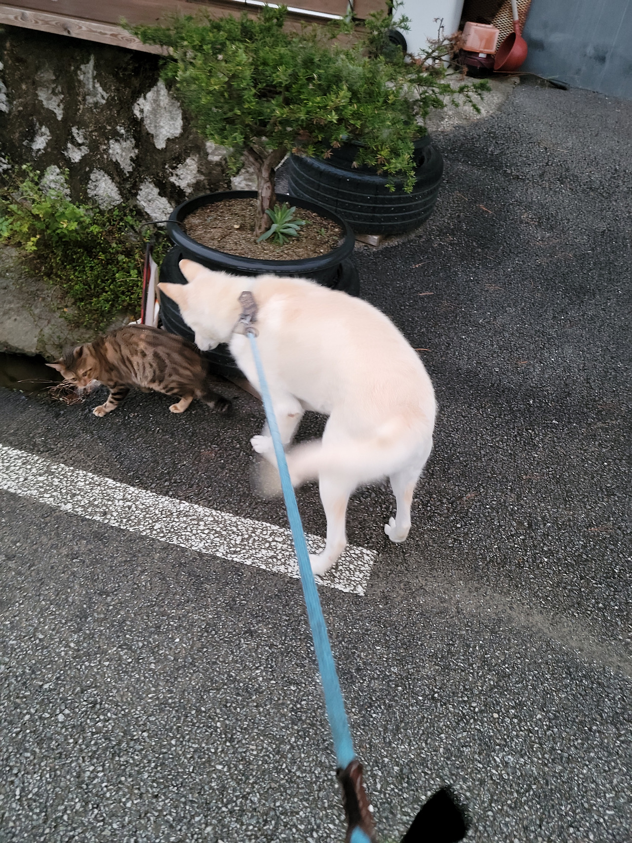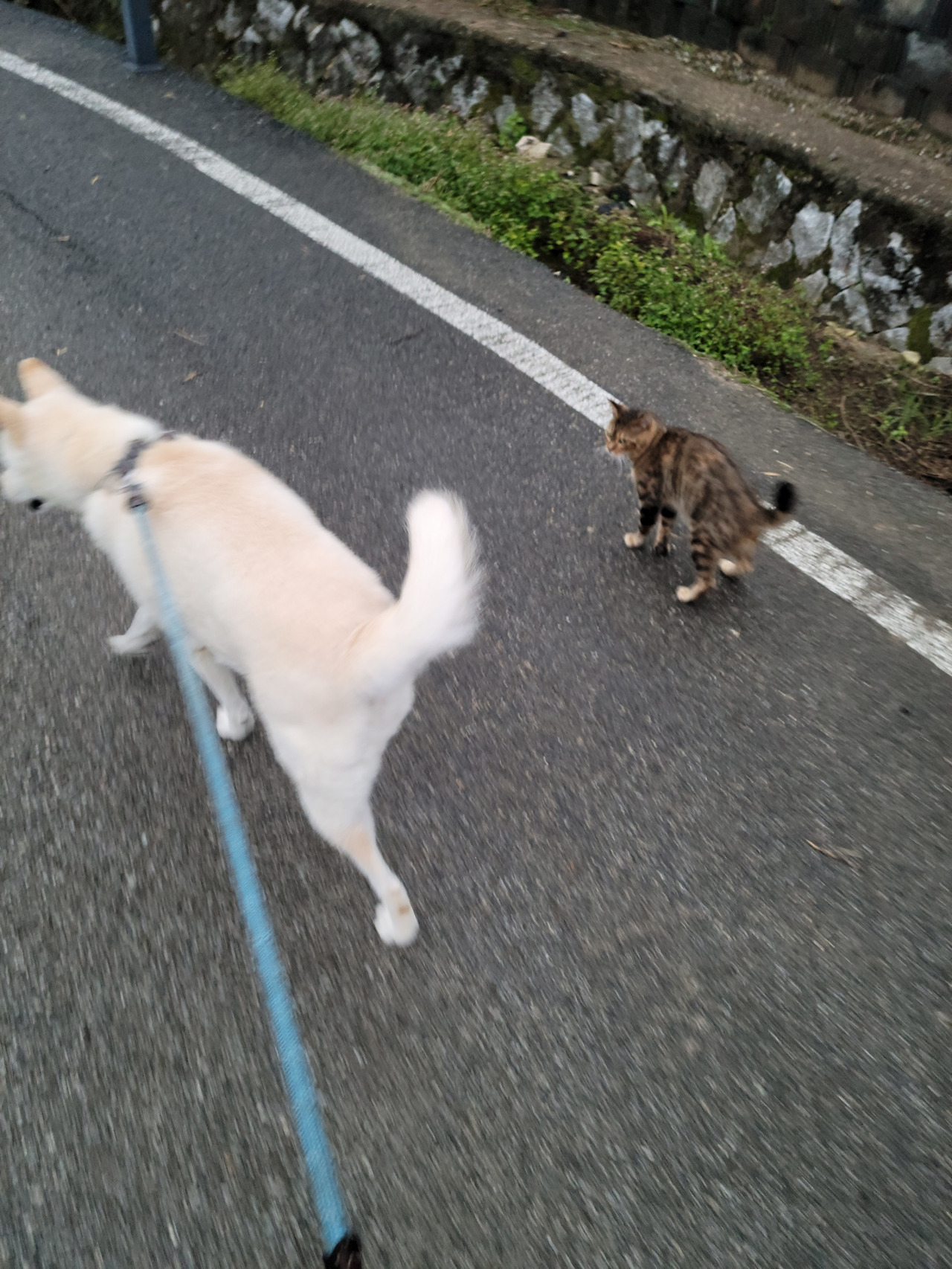 자두를 데리고 산책을 나가면 같이 따라 나와서 앞서거니 뒤서거니 하면서 산책을 같이 합니다
