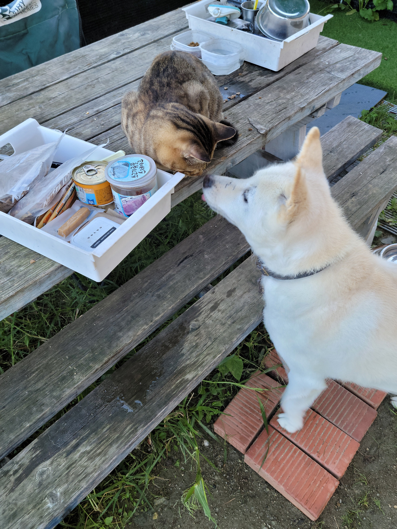 그러니까 내가 자두 우리 쪽으로 다가가면 가만히 누워있던 자두는 후다닥 일어나 테이블 위에 있는 호피에게 가 냄새를 맡고 핥고 장난을 겁니다.