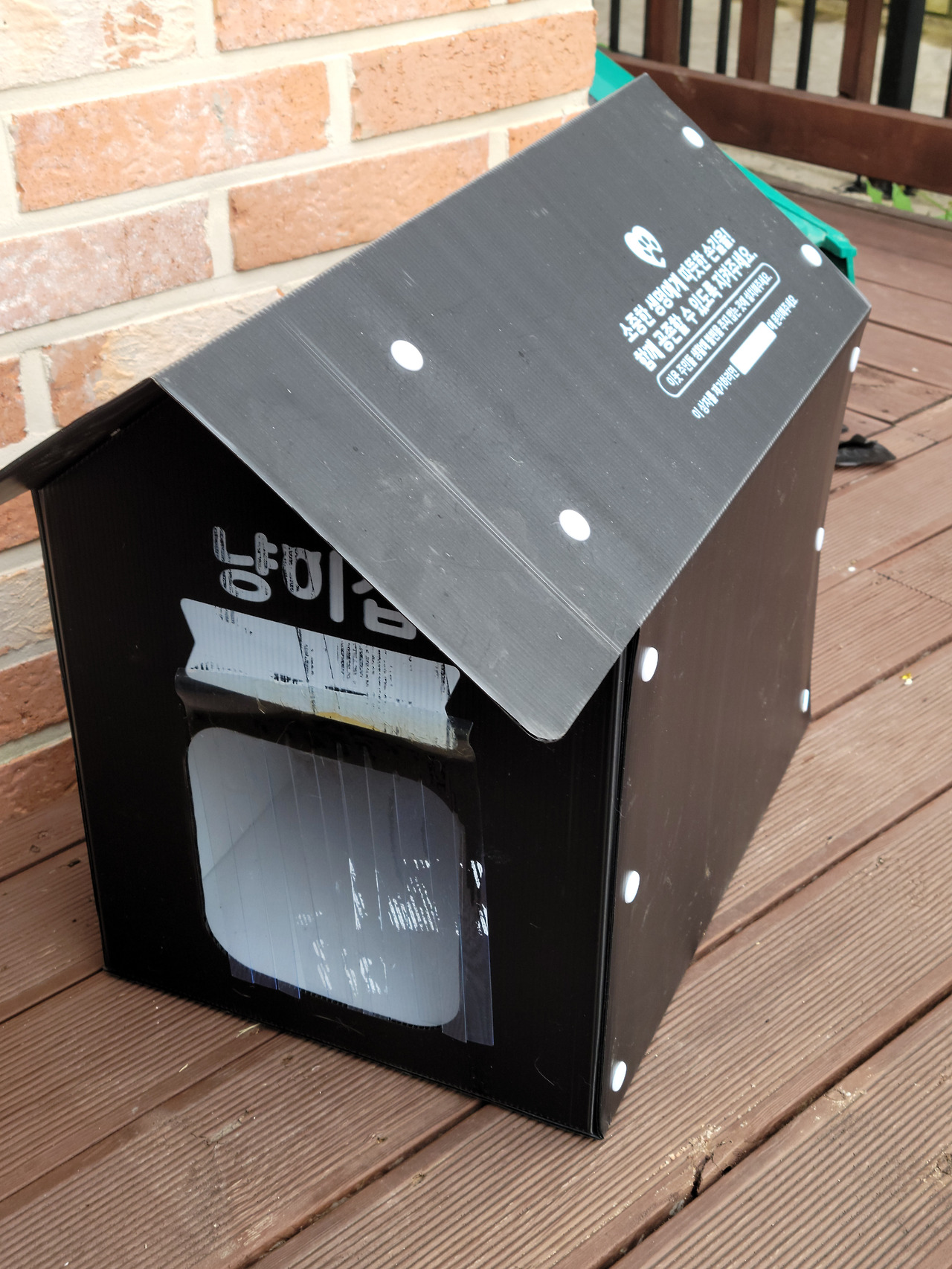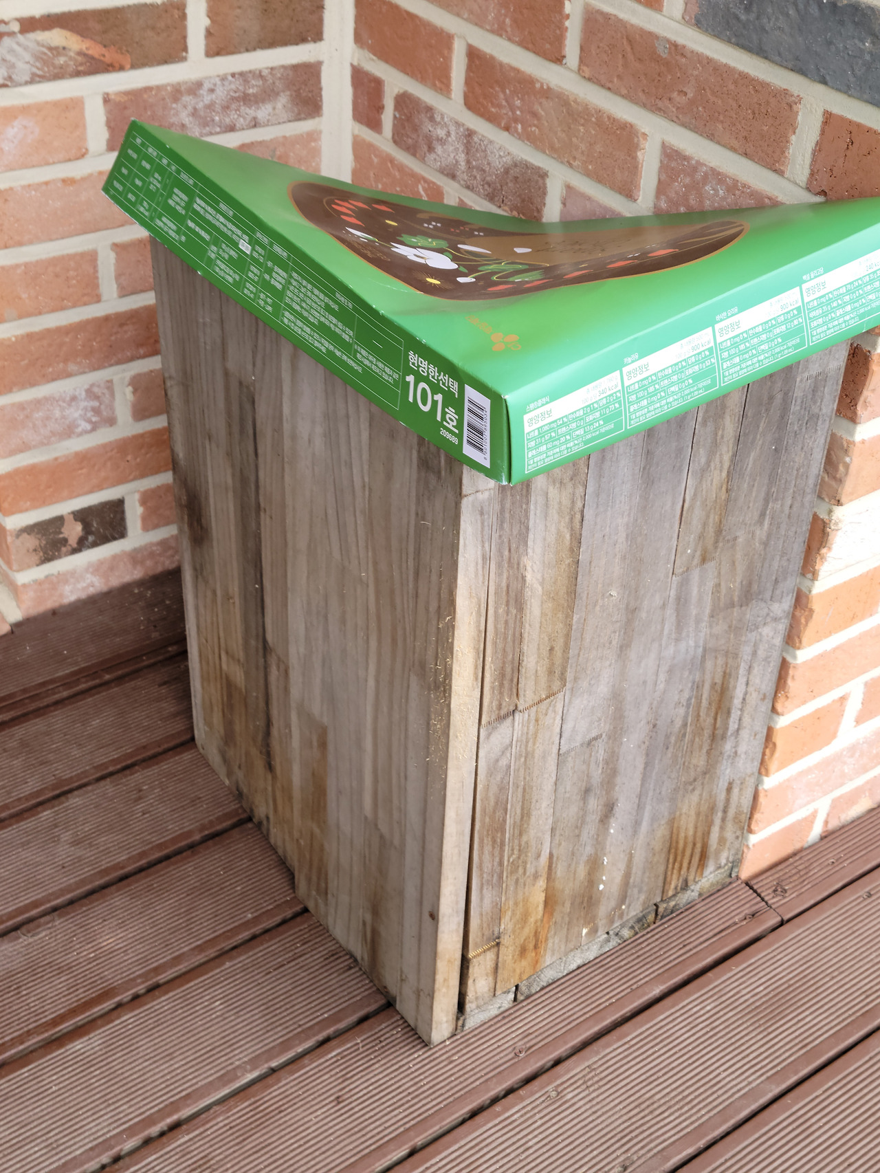 며칠을 그렇게 데크 위에서 웅크리고 자길래 예전 임시 집을 다시 뒀습니다.
