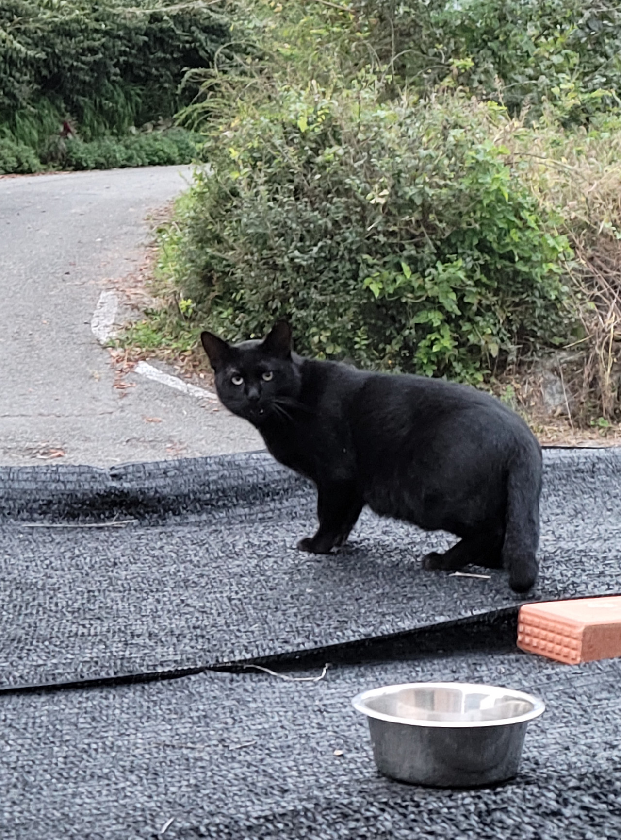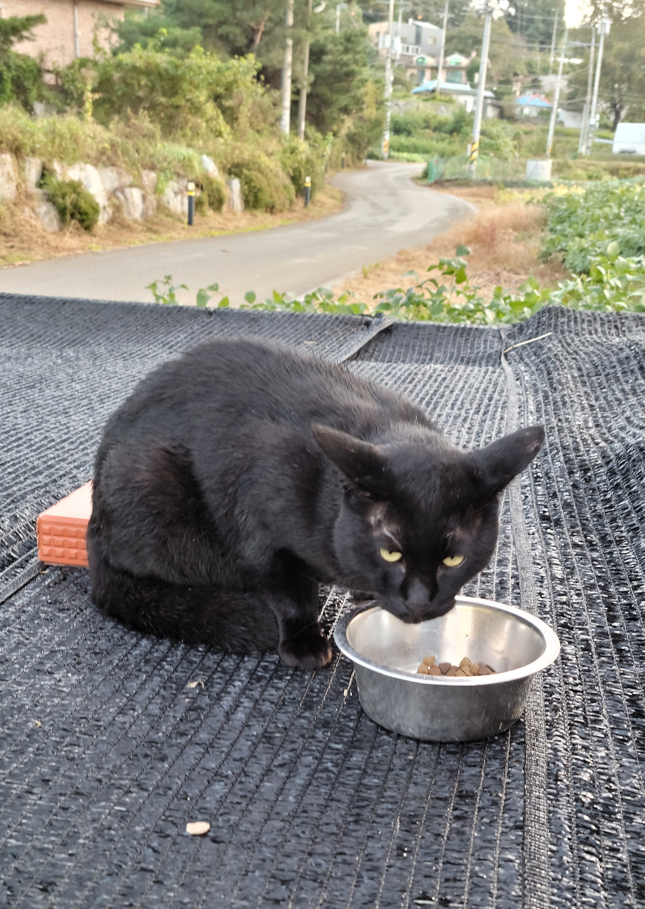 처음 턱시도 2호가 와서 밥을 먹고 있는 것을 목격했는데 이젠 블랙이도(2호)? 와서 밥을 먹고 있습니다