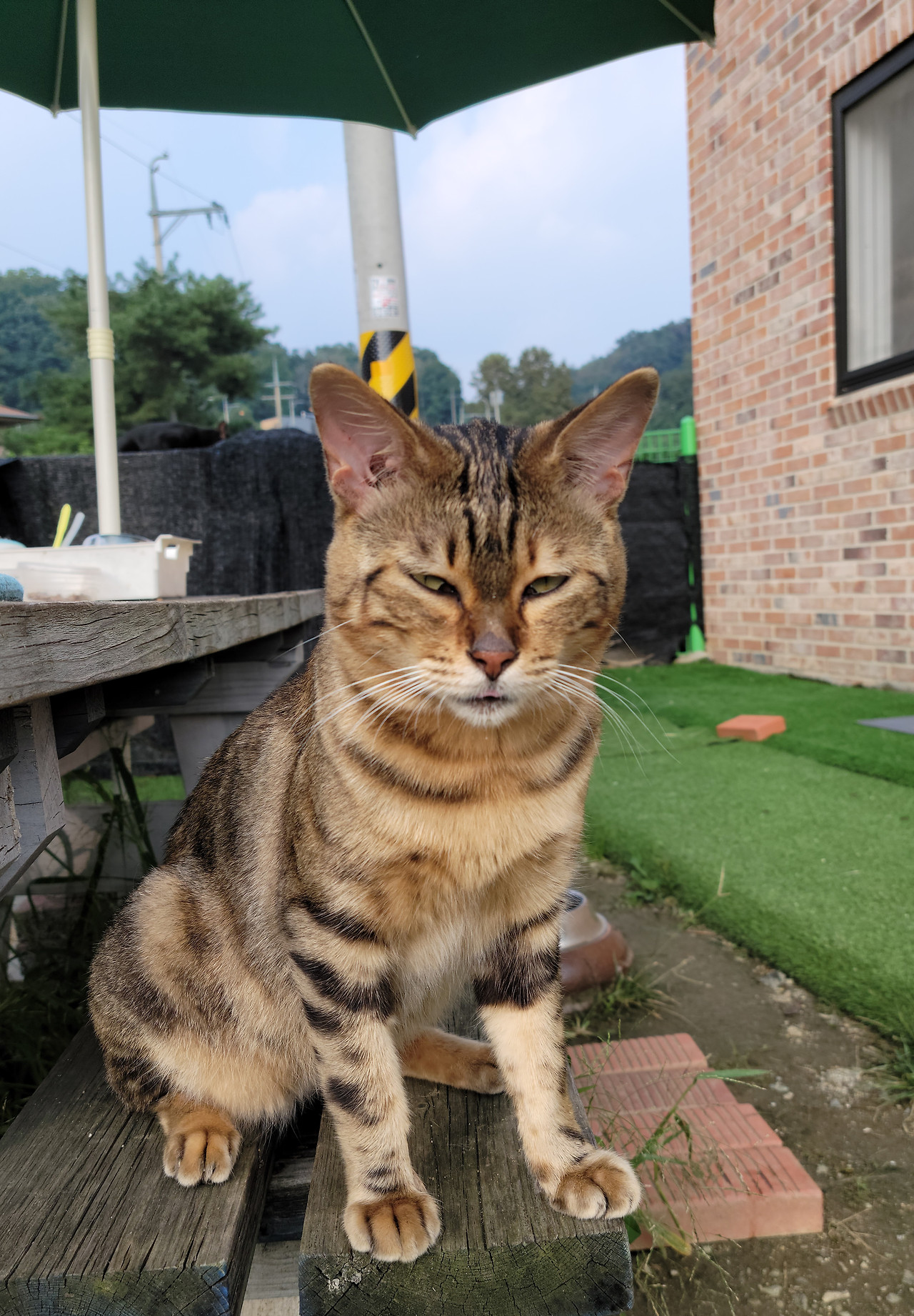 지난번 밖에 있을 때 테이블 위에 있길래 가까이 갔더니 후다닥 도망을 가더군요.