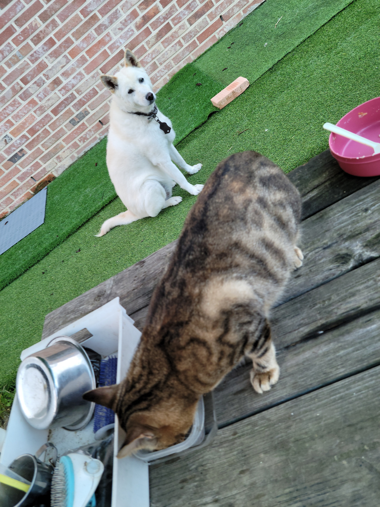 이미 자두의 비호(?)를 받고 있는 호피는 맛있게 밥을 먹고- 실은 자두는 호피를 보호하지 못하는 것