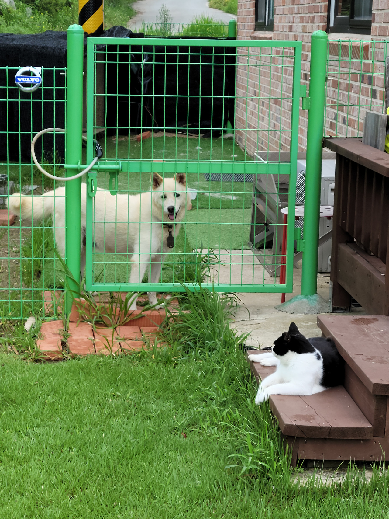 요즘엔 자두도 턱시도에겐 짖지 않습니다.
