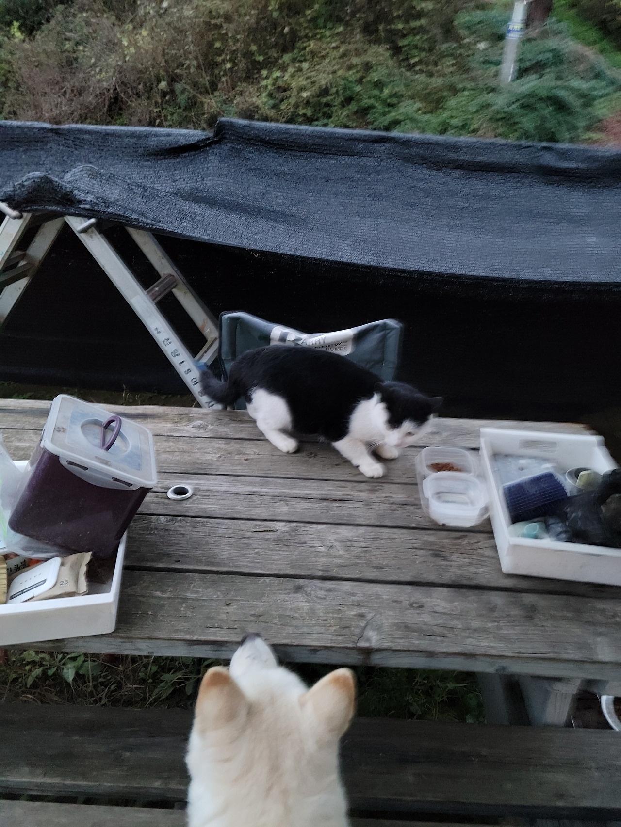 우선 블랙이 인데요.... 요즘 여러 애들이 돌아가며 또는 다른 시간대에 와서 밥을 먹고 간다는 걸 알았습니다.