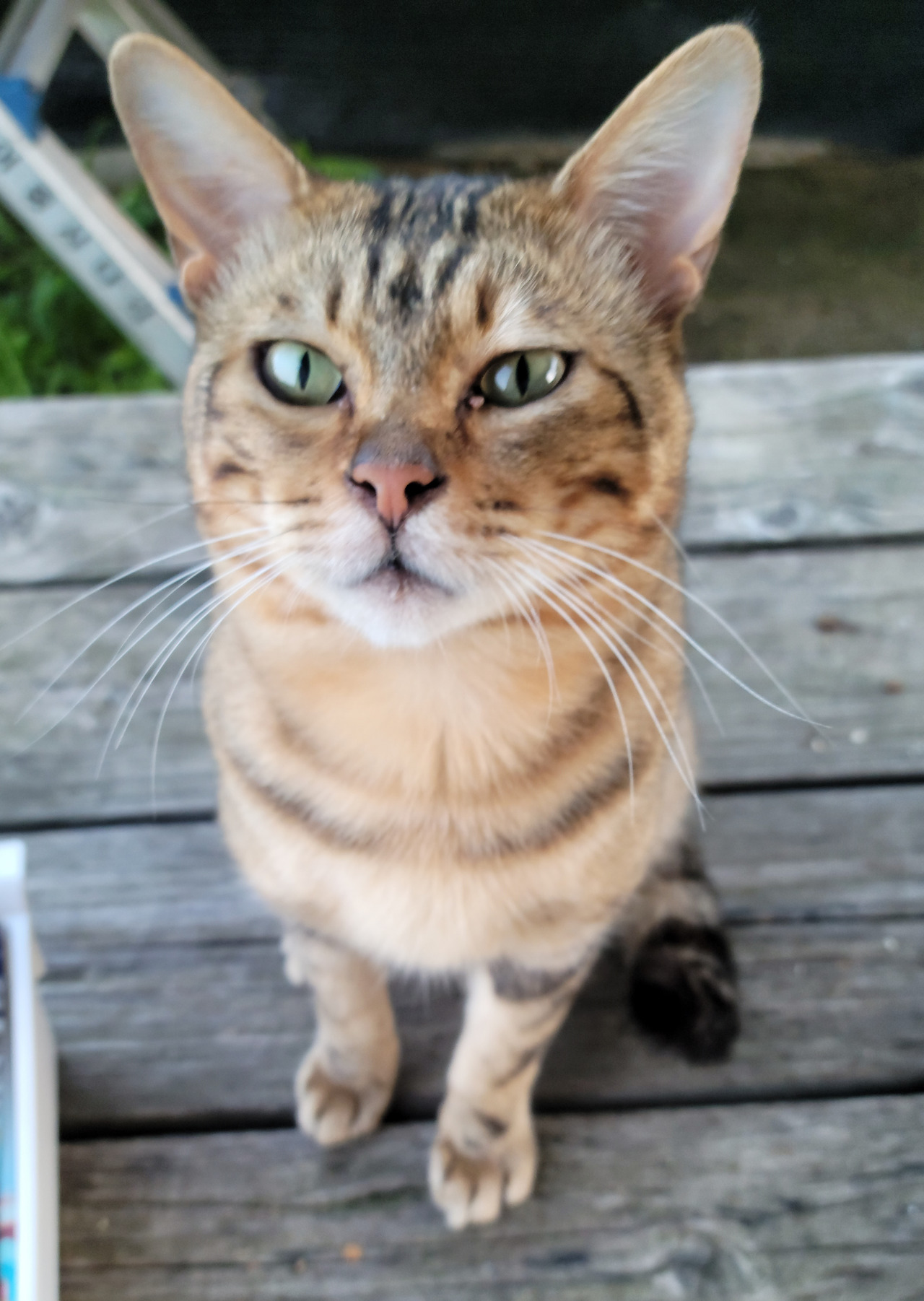 마당 쪽으로는 '턱시도'와 '치즈 1호'가 있어 접근하지 못하고 자두 우리를 넘어 테이블을 자기 구역으로 삼고 있습니다. 신기한 건 여기 테이블 위엔 블랙이(어떤 애인지 모르지만)도 올라오고 '턱시도 2호'도 올라온다는 거... '호피'는 블랙이와는 호의적인 관계인 건 분명한데 '턱시도 2호'와는 그런지 잘 모르겠습니다.