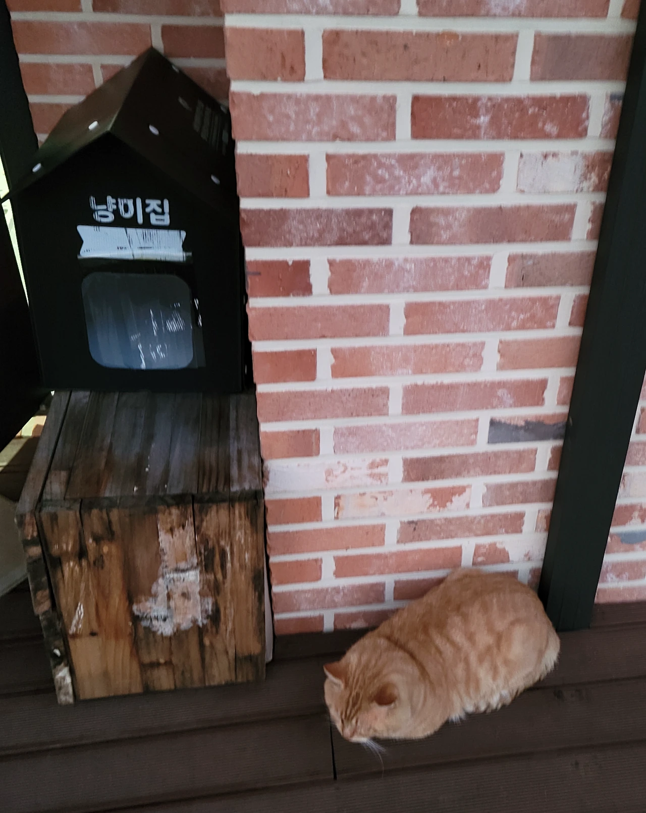 사실 여기 오는 애들 중 이 아이가 제일 걱정이 됩니다. 아파 보이고 해서요... 게다가 다른 애들은 갈 집이 있는지 밥을 먹고는 다들 사라지는데 이 아이는 여길 터전으로 삼고 눌러앉아서 늘 신경이 쓰입니다. 이제 본격적인 추위가 오면 저 애는 이 플라스틱 집에서 겨울을 날 수 있을까... 하는 걱정입니다