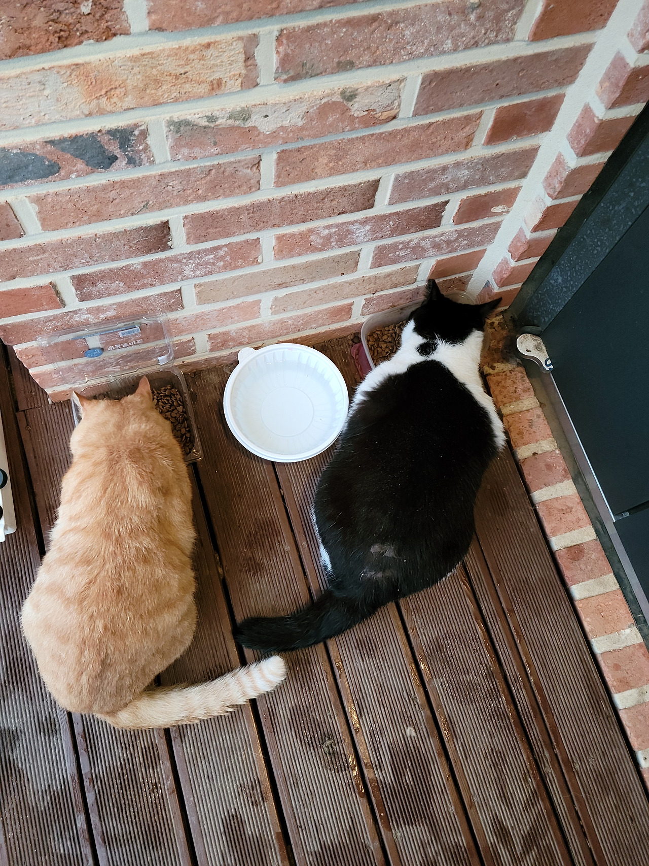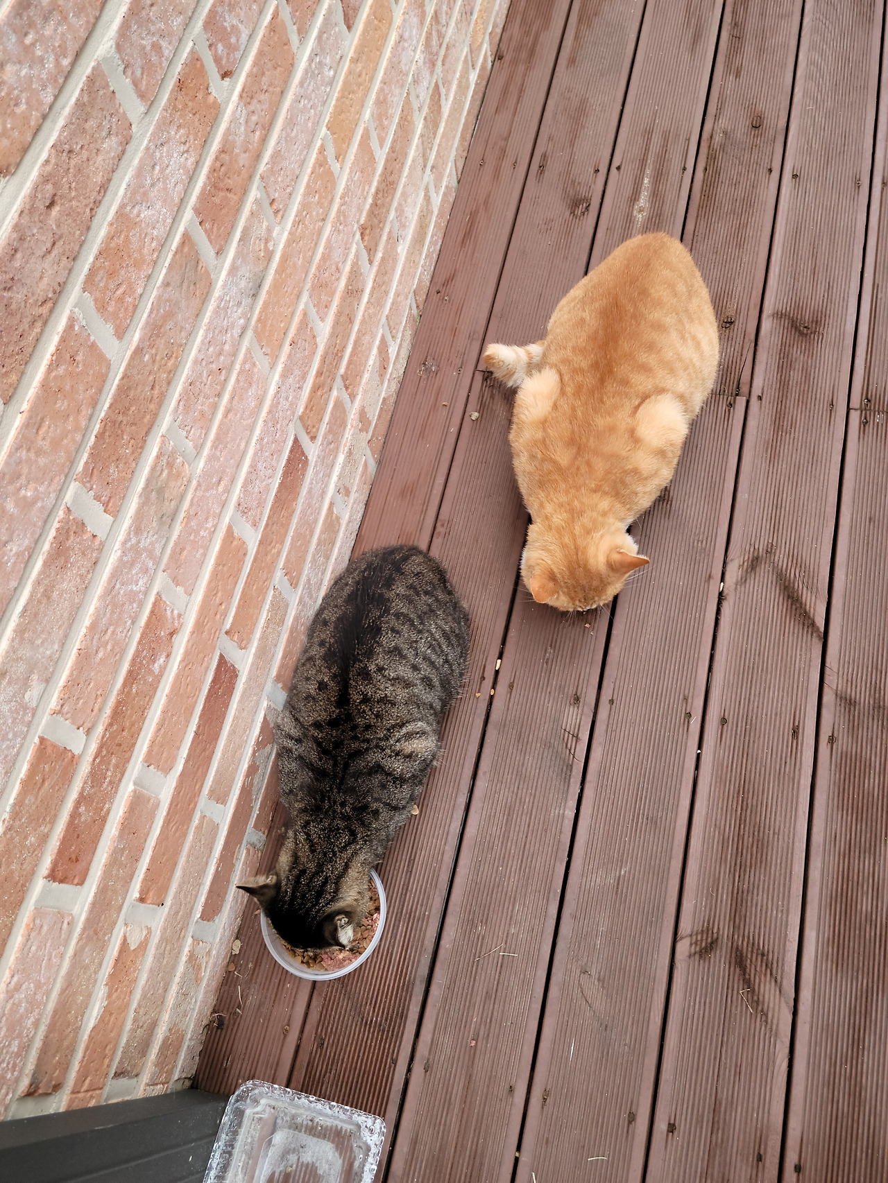 치즈 2호의 밥도 먹었습니다. 신기하게도 치즈 2호는 물러나 뒤에서 바닥에 떨어진 걸 먹습니다