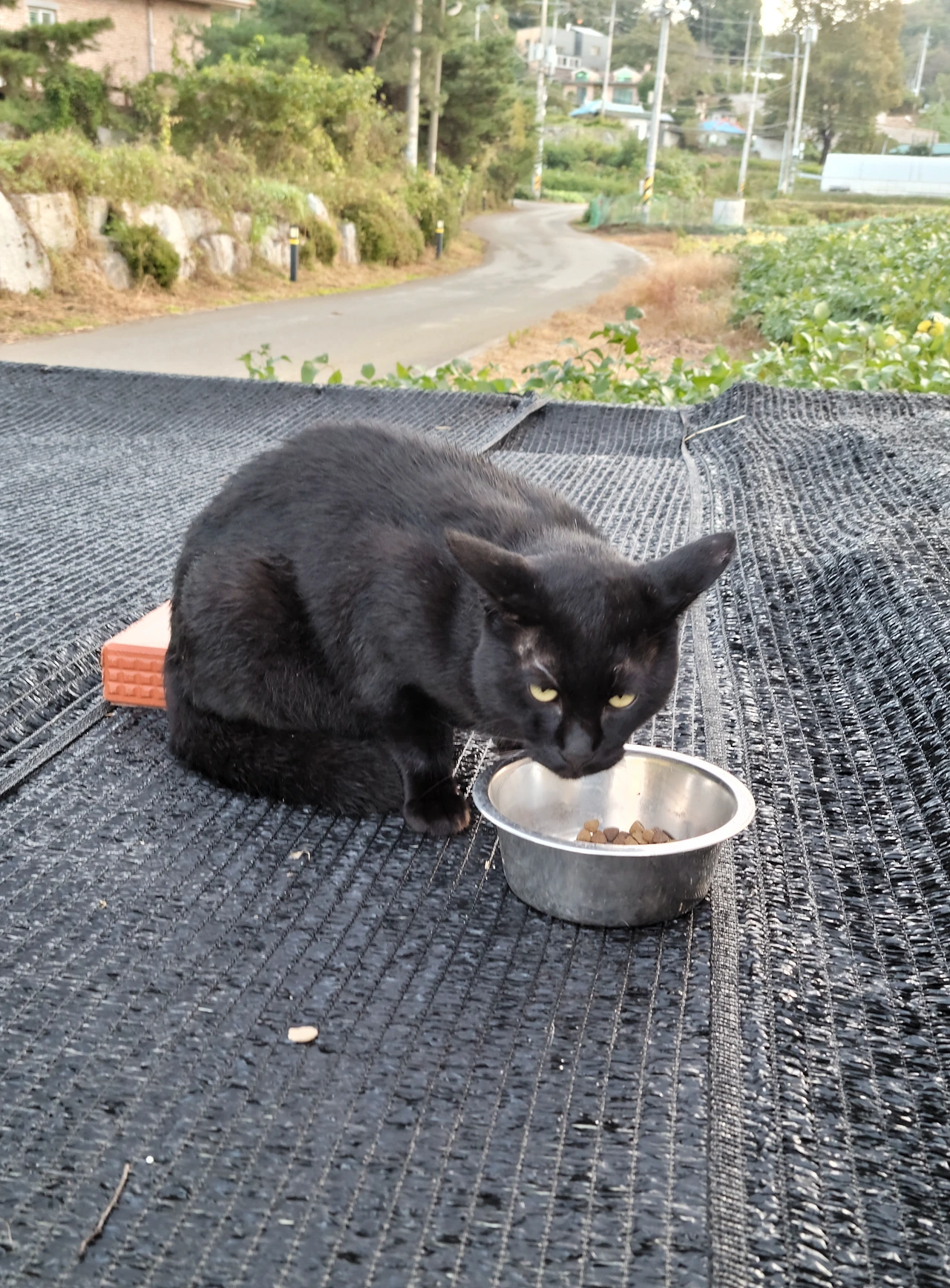마당 주차구역에 밥을 주었습니다. 여긴 턱시도가 공격하지 않아 평소 마당을 배회하는 블랙이 들이 밥을