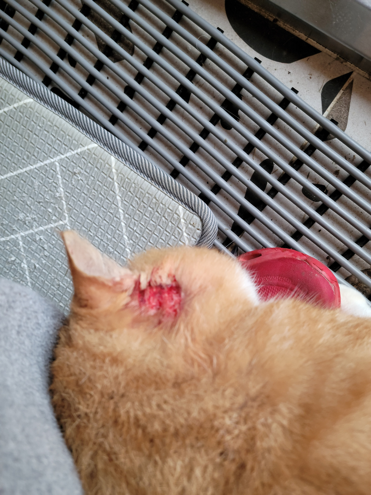귀 옆에 딱지가 붙어 있었습니다만 현재는 살도 오르고 털도 깨끗해지고 눈곱도 거의 없어졌습니다.