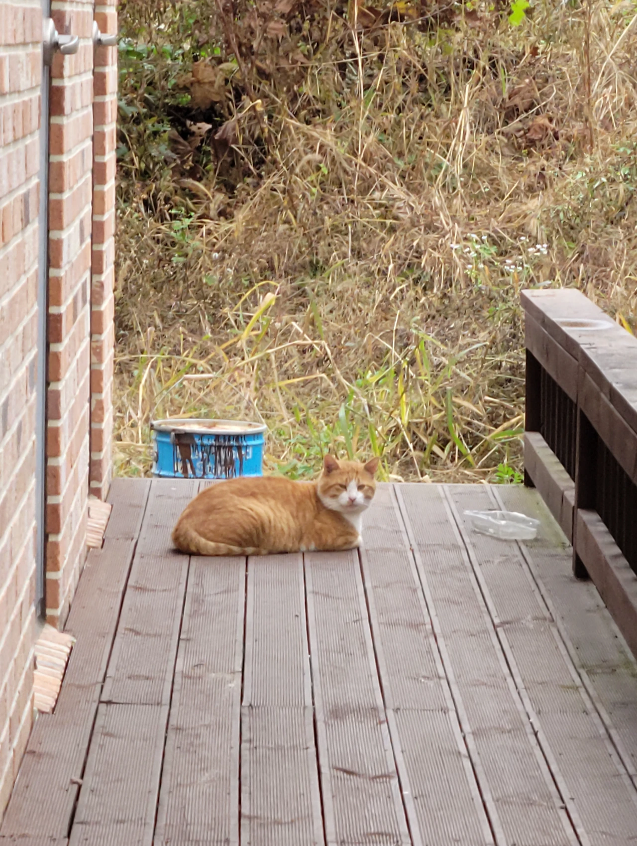 첨엔 그냥 데크 위에서 살다가 날이 추워져 집을 마련해 주니 그 집에서 살고 있습니다만
