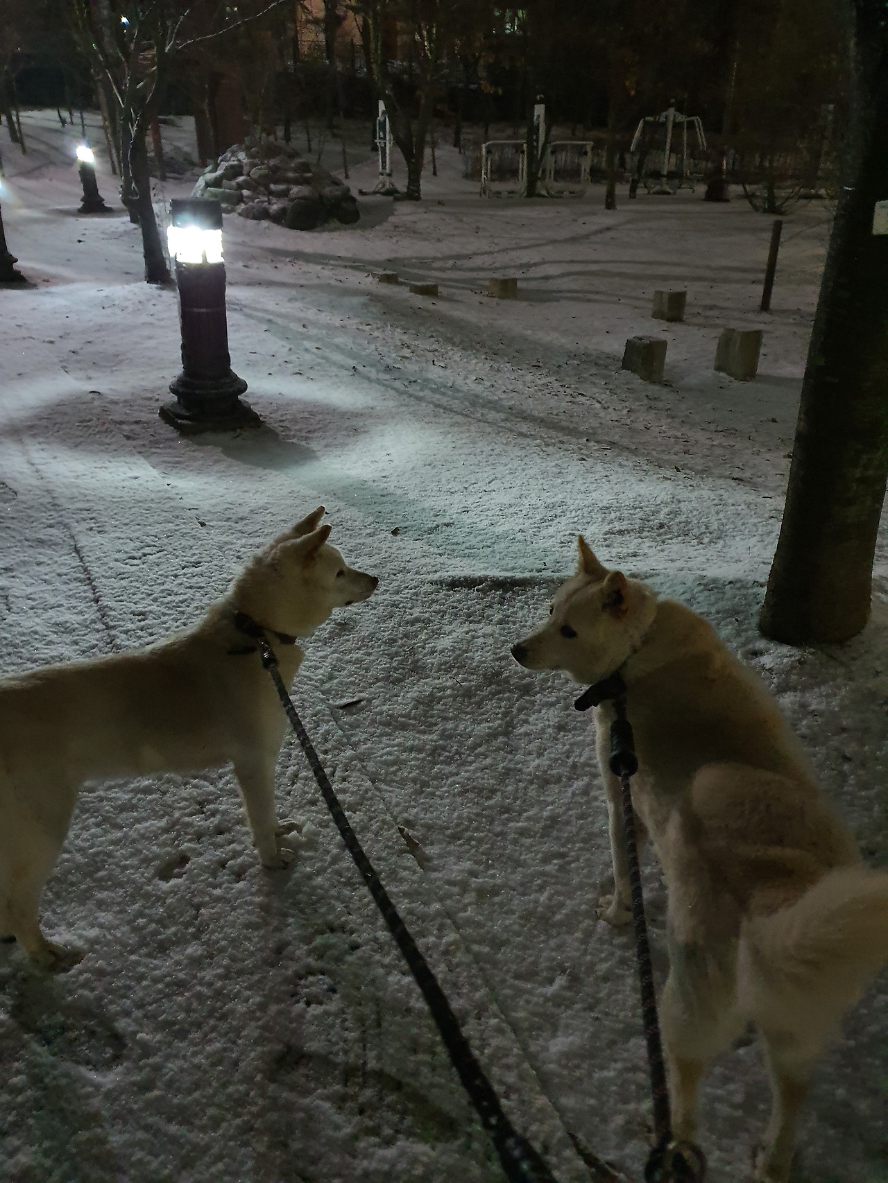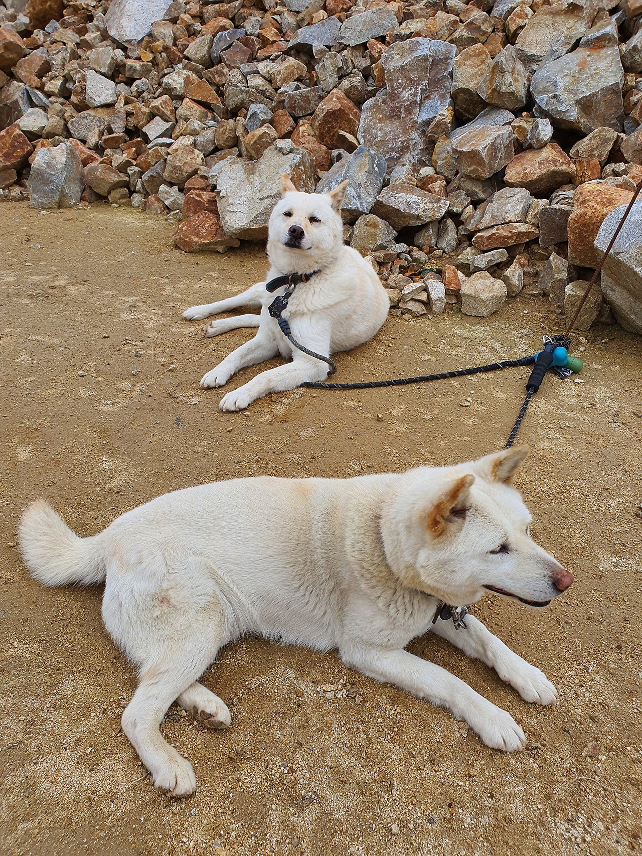 살구는 소심하고 겁도 많아서 낯선 것에 반응이 즉각적이다. 일테면 낯선 사람에겐 다가가지 못하고 경계를 하고 짖거나 낯가림을 한다. 산책을 나가면 자두는 지나가는 사람들이 아는 체를 하면 금방 달려가 응석을 부리듯 달려들곤 하는데 이게 작은 개도 아닌 큰 개가 다가오면 사람들이 놀라는 게 문제다. 이건 아마도 내게로 와서 사람에 대한 경계심이 없어진 후 어릴 적 지나가던 사람들이 귀엽다고 만져준 기억에 학습 효과인지 아무튼 낯선 사람들을 무서워하지 않는다. 심지어 모르는 사람들이 집에 와도 꼬리를 치며 다가가곤 하는 것이다. 반면 살구는 낯선 사람이 다가오면 경계를 하고 집에선 낯선 사람들에게 짖거나 으르렁 거려 다가오지 못하게 한다. 물론 그게 오래가지는 않는 것이 그 사람이 집에 들어오면 태도가 바뀐다는 것이고 지나가는 사람들에겐 경계만 하고 지나가면 끝이 나서 다행이긴 했다. 그래도 살구는 낮선이게 짖음이 있어 신경이 쓰이곤 했다.
