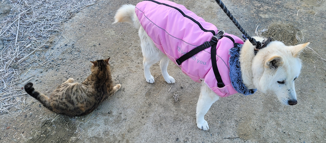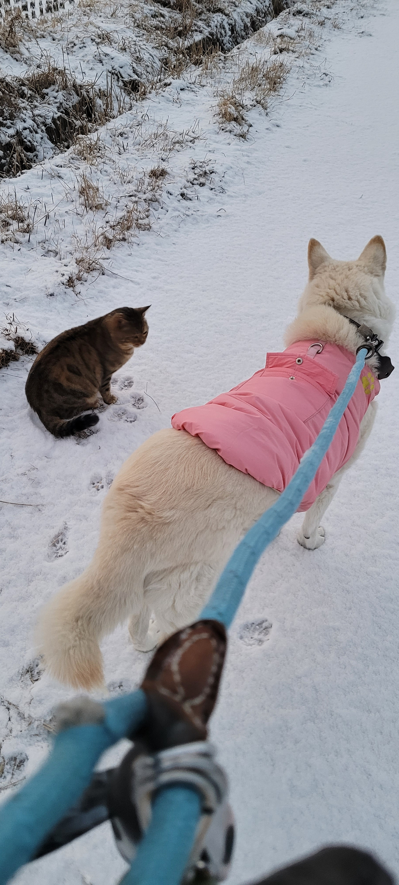 요즘은 새로운 냥이들이 보이면 약하게 짖기는 합니다만 늘 오는 애들이거나 우리 집에서 터 잡고 사는