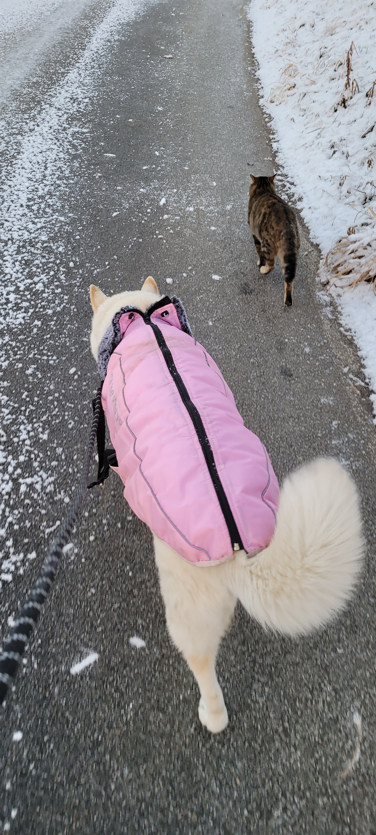 입고 벗기는 게 힘들어 이 옷은 아마도 2월까지 이렇게 입혀놔야 할 것 같습니다.