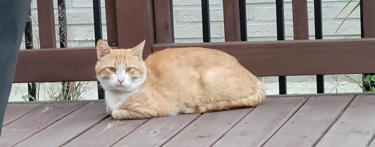 그간 현관 앞 데크 중앙은 '턱시도'와 '치즈 1호'가 같이 살며 그 중앙은 성역처럼 되어 다른 애들이 접근을