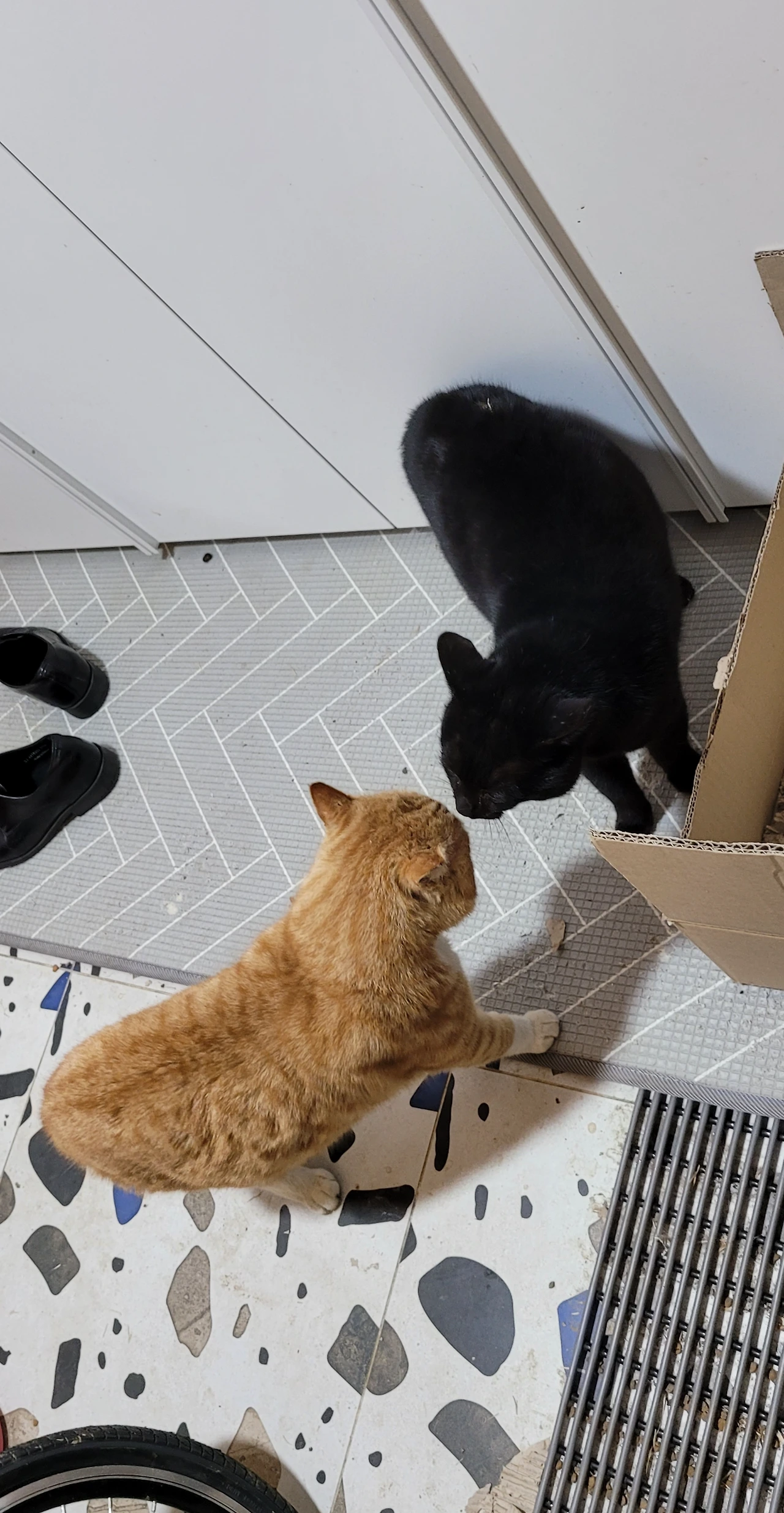 일단 요즘 둘은 늘 팽팽하게 서로 노리고 있습니다. 그래도 그게 어딥니까 예전 같으면 상상도 못 할 일이죠... 그간 겨울이 되자 자두네 집에서 살던 호피는 얼마 전부터는 집을 나가 밥때만 옵니다.