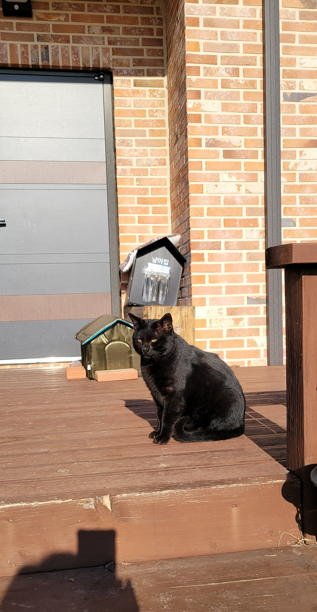 이렇게 '블랙이 3호'는 중앙권좌를 차지한 건지 이제 현관 앞에 거리낌 없이 나타나 밥도 먹고 쉬기도 하고