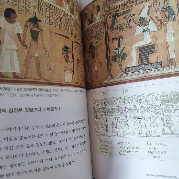 현대의 죽음은 삶과 분리된 것, 즉 더 이상 살지 않는 상태다. 이집트에서는 삶과 죽음의 경계가 지금과 달랐던 것 같다. 죽은 자의 육신을 그대로 보존하여 그가 밤에는 죽음의 세계에서 일어난다고 믿었다. 마치, 사는 동안에도 사후 세계를 준비하는 것처럼 보인다. 책에서는 저자가 죽음을 표현하는 현대 미술과 비교하며 변하지 않은 것과 변한 것을 보충 설명하고 있어서 과거와 현재의 시간이 압축되어 넘나드는 재미도 있다. 작품과 관련된 현대 미술을 이어서 설명하는 것도 이 책의 매력이다.