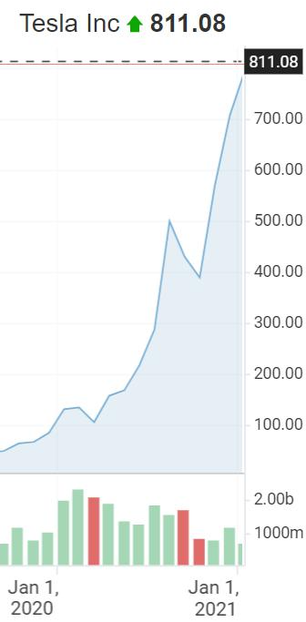 흡사 테슬라의 주가 차트를 방불케 한다.