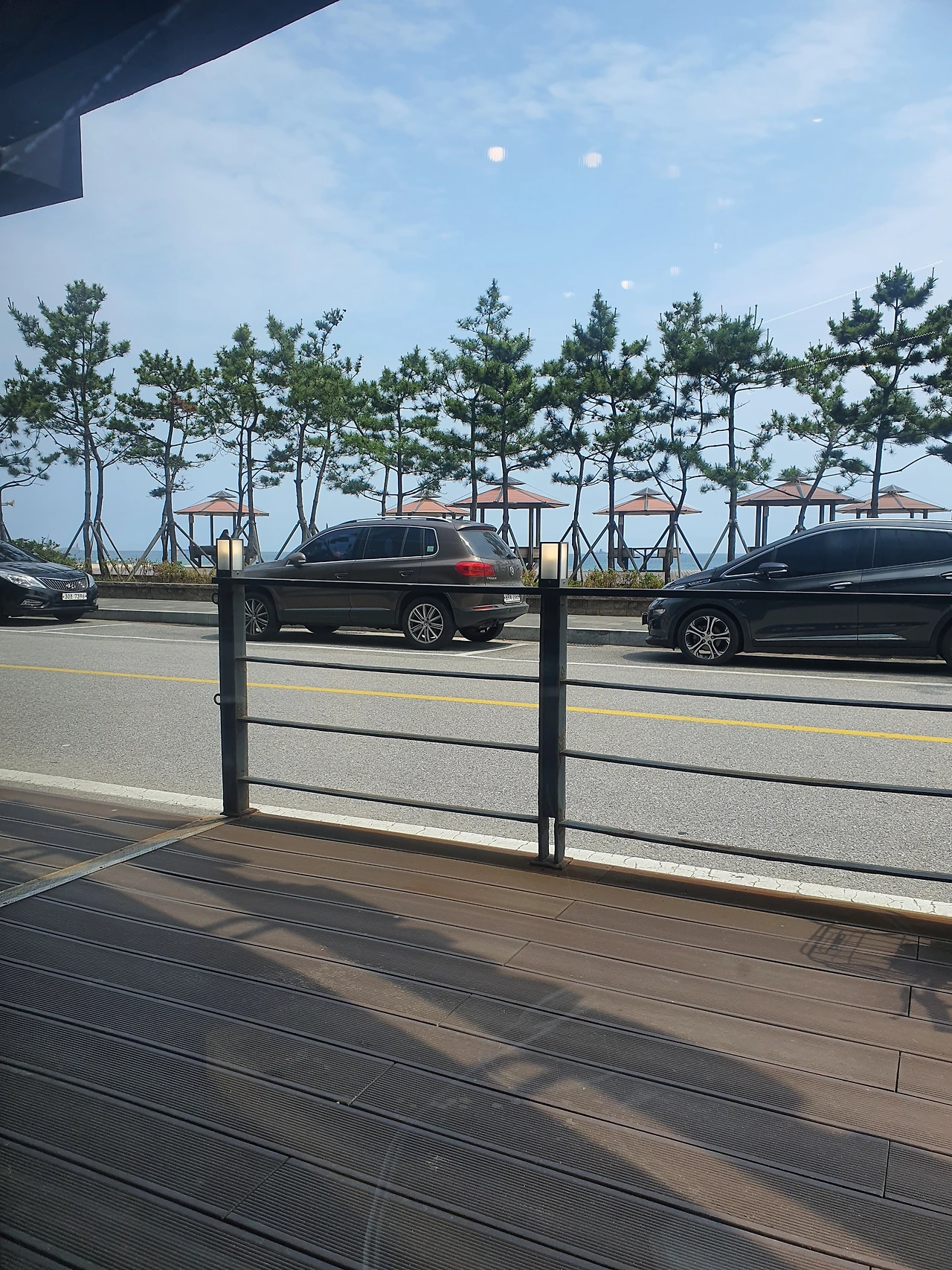 카페에서 본 바깥풍경. 바다가 보이는 자리입니다만 거의 보지 못했습니다.