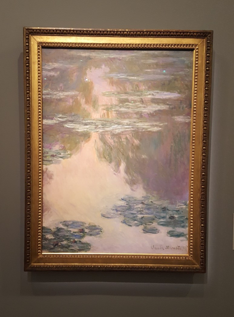 모네는 지베르니의 집에 머물며 연못의 사계절, 하루의 모든 시간을 관찰했다. 그래서 아침, 점심, 오후, 노을, 그리고 깊은 밤의 풍경까지도 봄여름가을겨울의 그모든 모습을 담으려 했던것 같다. 그리고, 참 신기하게도 그런 모든것들이 보이고, 느껴진다.