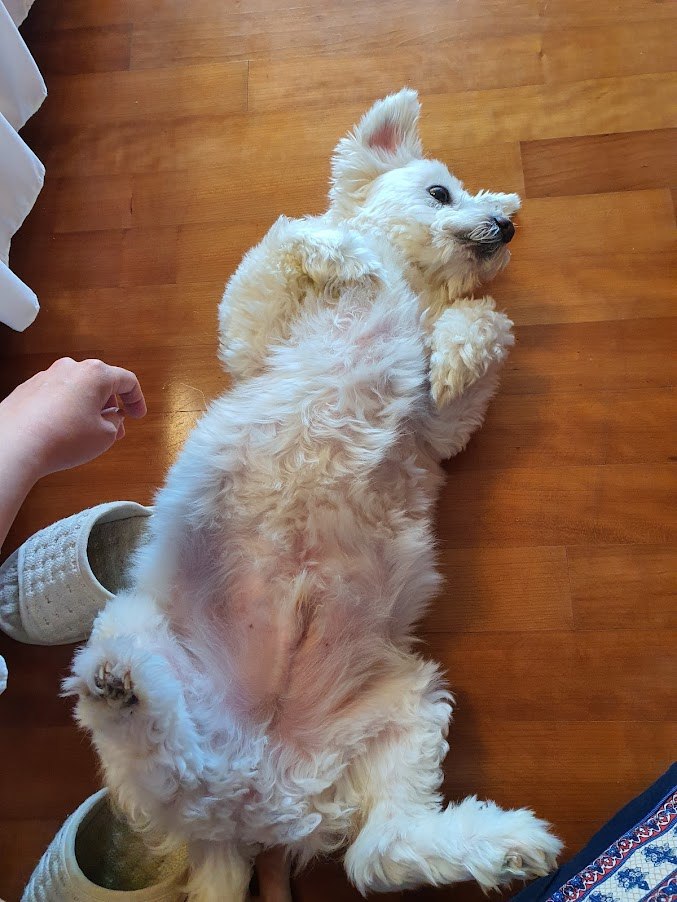 약을 먹으면 조금 둔해져서 찌릿하던 골반의 통증도 잠시 잊을 정도가 된다. 신체증상도 정신과 약으로 통제가 되는지 몰랐다. 통증도 가시고, 잠도 안 올 때는 강아지랑 놀았다. 우리 강아지는 강아지란 말이 무색하게 늙은 개다. 16살. 하지만 여전히 이빨도 튼튼하고 자기 주관이 뚜렷해서 귀찮을 때 부르거나 만지면 으르렁 거린다. 하지만 나는 아랑곳하지 않지. 노즈워크용 판에 간식을 숨겨놓거나 집안 곳곳에 간식 조각을 숨겨놓고 보물찾기를 시키면 그 늙은 녀석이 언제 그랬냐는 듯 눈이 번쩍 뜨여서 신나게 킁킁거리며 간식탐험을 떠난다. 그러고 나서 배가 부르고 만족스러운 기분이 사라지기 전에 잽싸게 이 녀석을 쓰다듬으며 애정표현을 해준다. 그럼 녀석도 마음이 좋아져서 생전 안하던 벌러덩 재끼기도 보여준다.