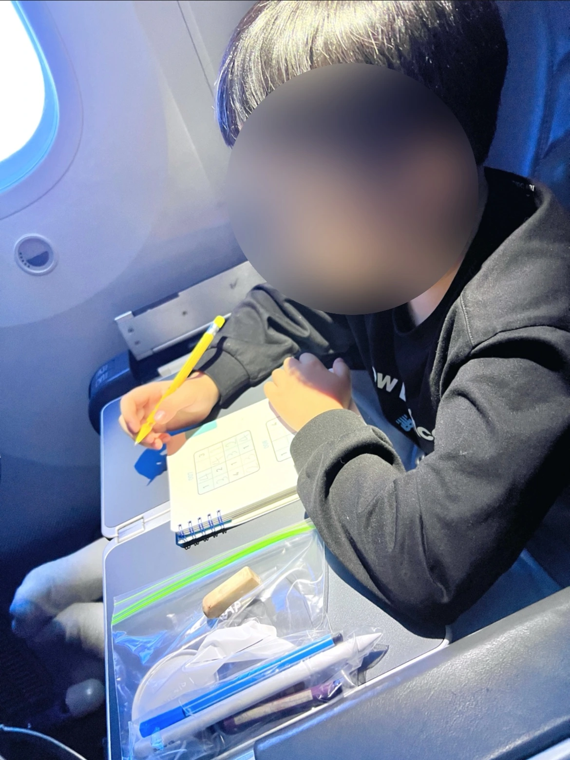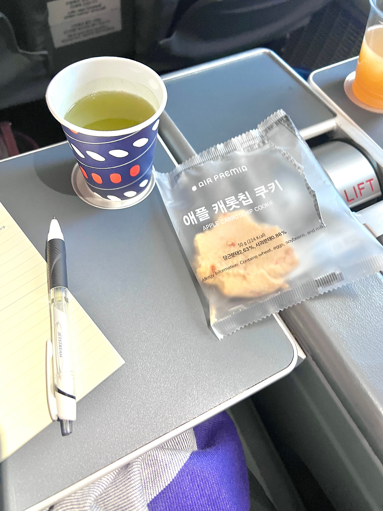 좌석 간 공간이 넓다 보니 앞 좌석 싯포켓과 접이식 테이블이 없다. 테이블은 좌석 팔걸이 안에 있는데 바로 앞에 있는 것보다 쪼꼼 불편하다.. 정도. 혹시 아이가 많이 불편해할까 싶어 풋 해먹도 가져가긴 했는데 설치가 불가하고 자리가 넓어 굳이 발받침이 필요하진 않았다.