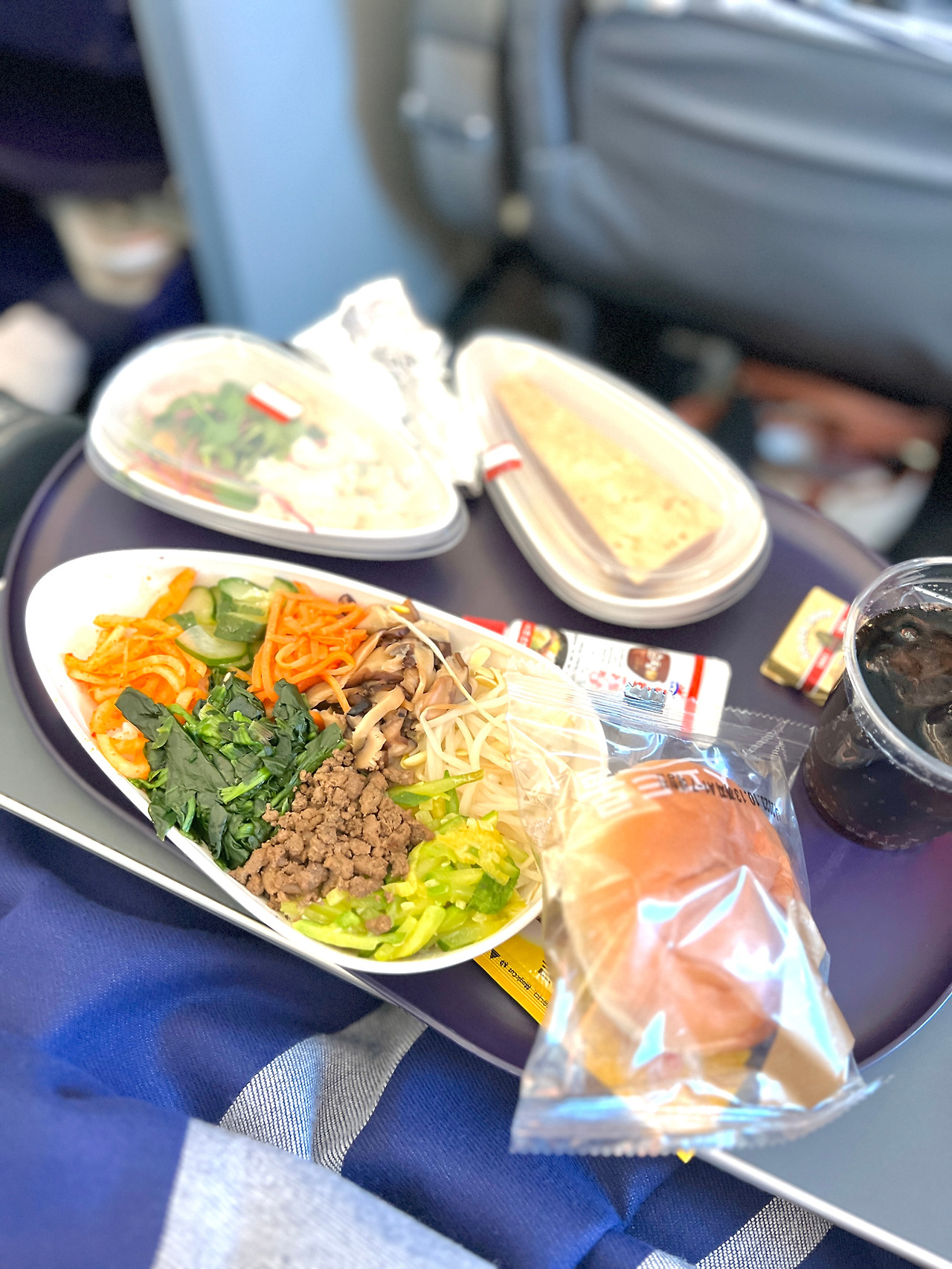 단점이라기보다 아쉬운 점이라면 기내식이 두 번 제공되는데 모두 그냥 그저 그런 맛이었다... ㅎ 그나마 비빔밥이 좀 더 먹을만했다. 아이가 많이 남겼다. 무지 잘 먹는 아이인데..