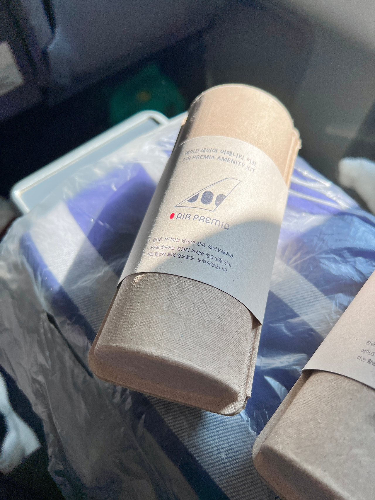 어메니티 키트가 마음에 들었다. 프리미엄 이코노미 42에 기본으로 제공하는 어메니티 키트는 헉슬리 제품으로 오일미스트와 립밤, 핸드크림 아로마틱 보습 관리템 3종이 재활용 패키지에 들어있다. 퀄리티도 향도 좋았고 건조한 기내에서 유용했다.