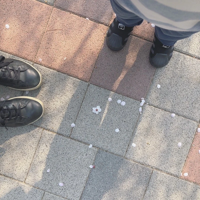 바람에 꽃잎이 흐드러지고, 바닥에도 꽃잎이 많이 져있었다.