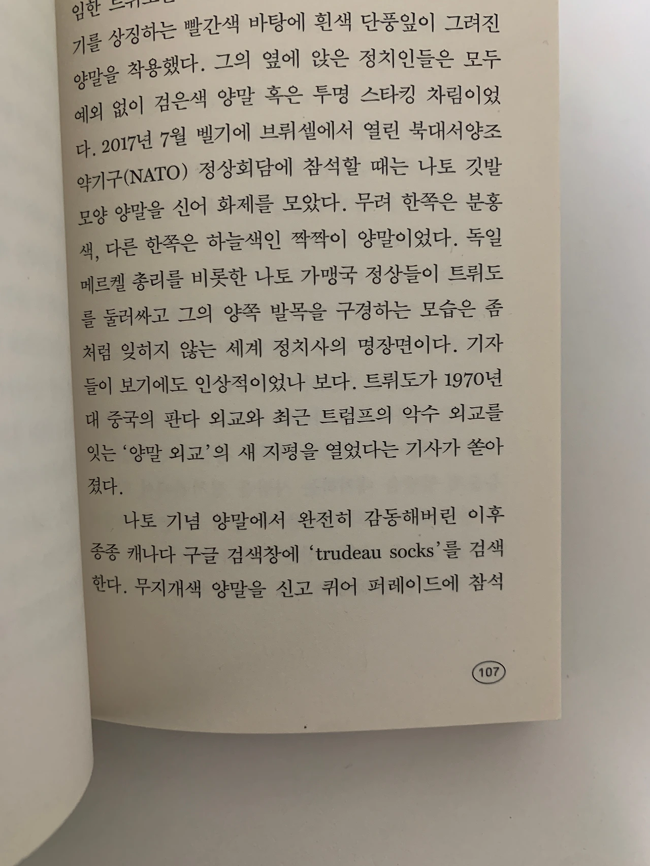 양말 신은 이성, 캐나다 전 총리 쥐스탱 트뤼도 이야기였다.