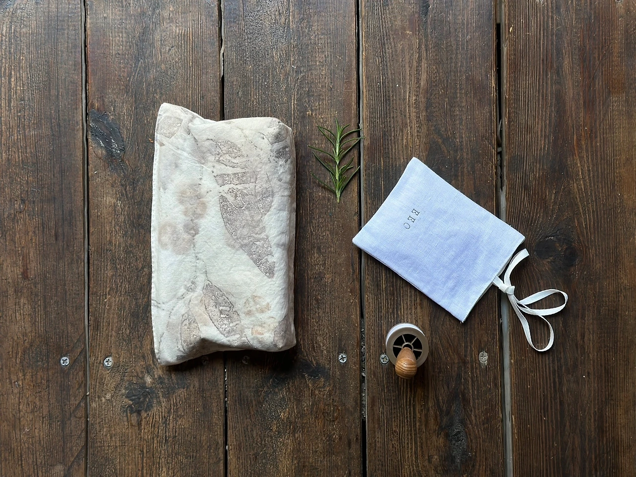 작년에 에코프린팅한 원단을 어떻게 활용할까 고민하다가 파우치를 만들었다.