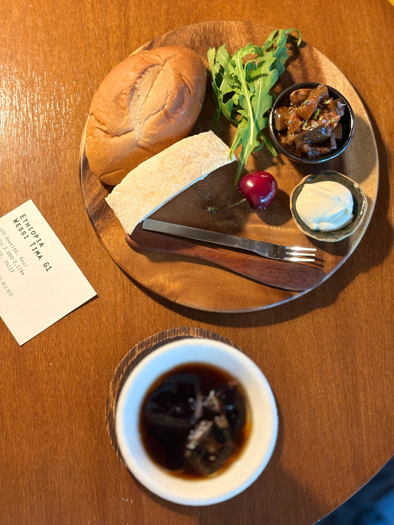 맛있는 커피와 빵 그리고 카페안에 흐르는 음악이 좋은 그 시간에 분위기있게 비까지 내려주신다.