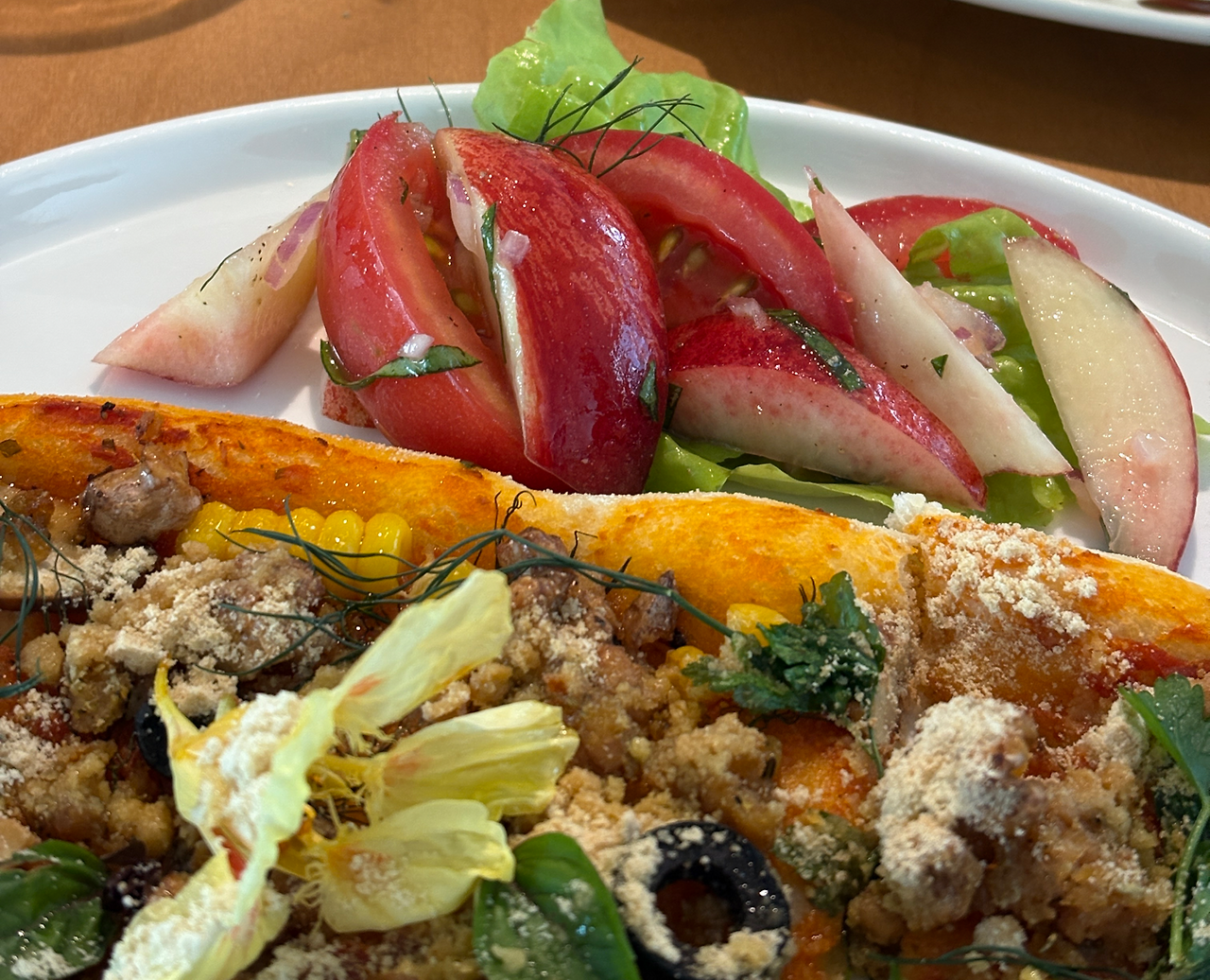 허바닉정원에서 새벽에 갓 수확한 허브와 세프의 텃밭 채소, 듀럼밀로 저온숙성한 도우로 피자와 샐러드를 만들어 다 같이 즐기는 시간이다. 아이들과 오신분들이 과반수라 화기애애한 분위기이다.