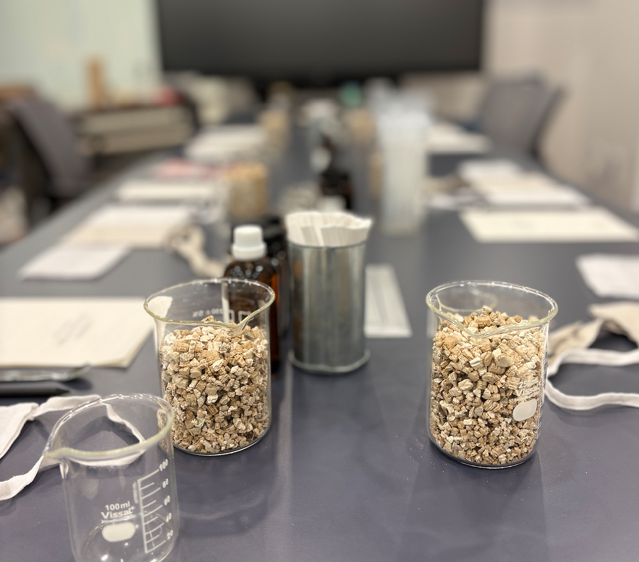 여러가지 향을 시향하고 그중 3~4개 골라서 자기만의 향을 만들어 사쉐용스톤에 섞는다.