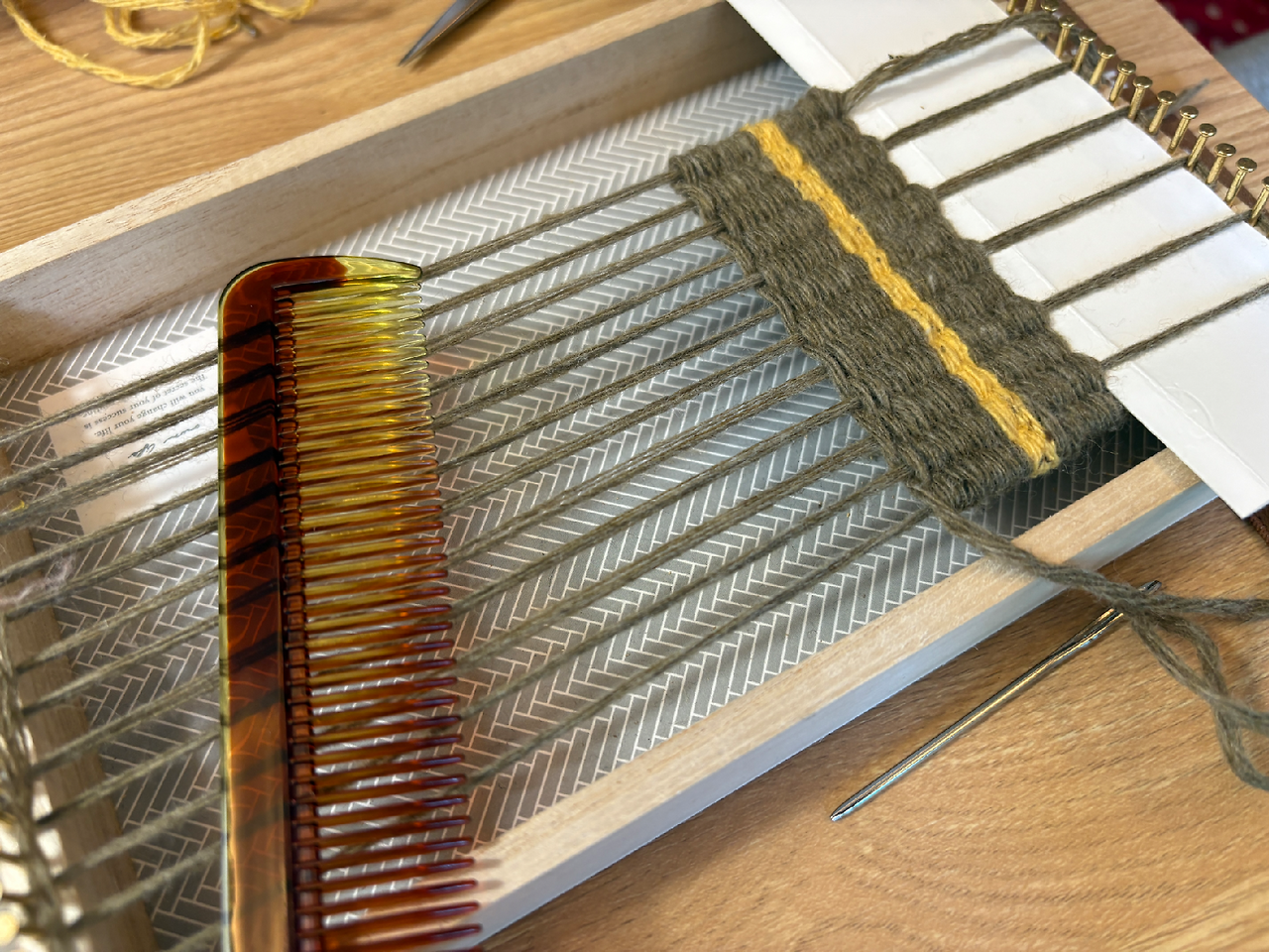 가로는 3가지 컬러로 번갈아가며 엮어나간다.