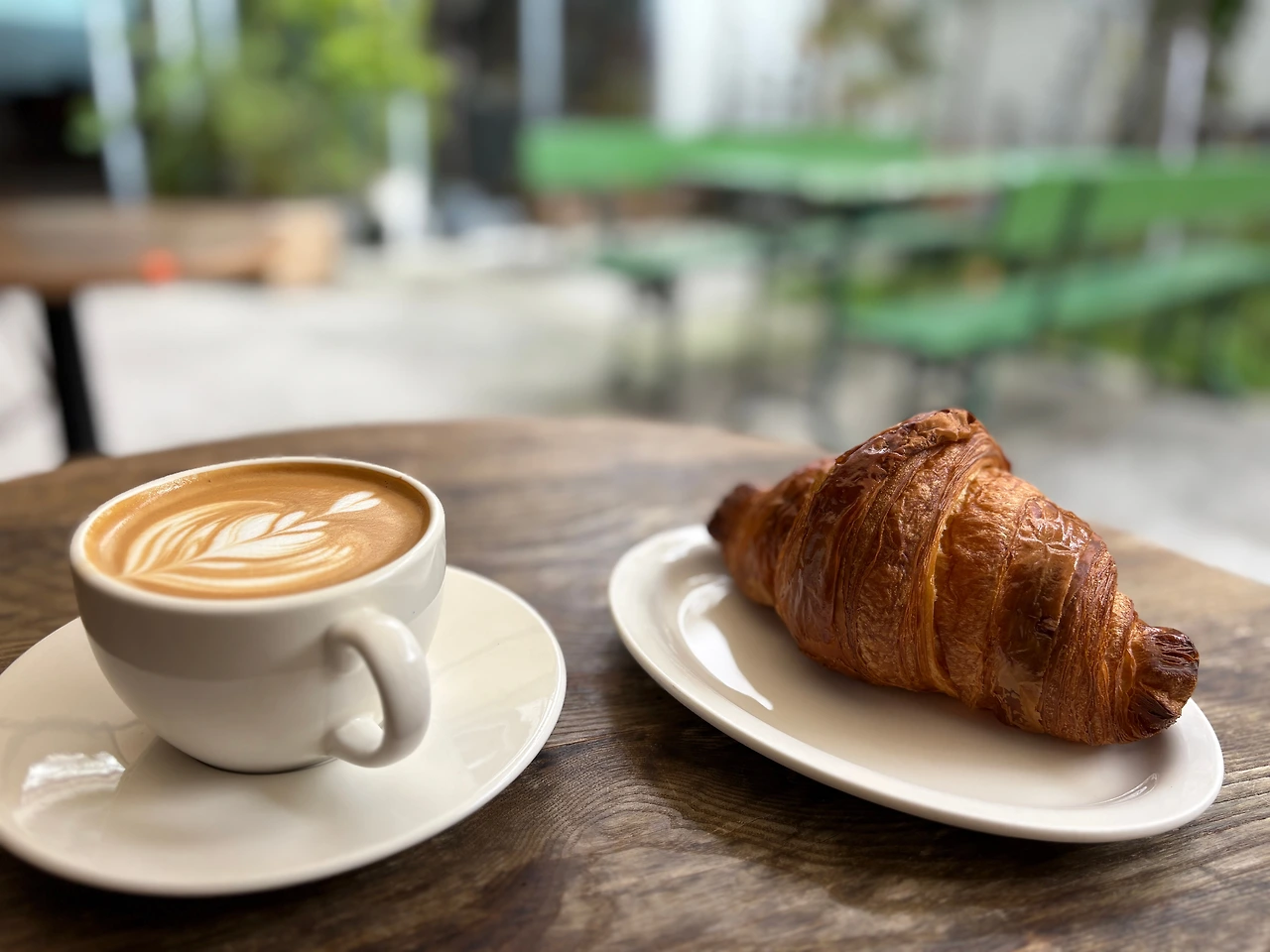 뜨거운 햇살 대신 선선하면서 빛 좋은 시간때 야외테이블에서 라떼와 크로와상을 즐겼다.