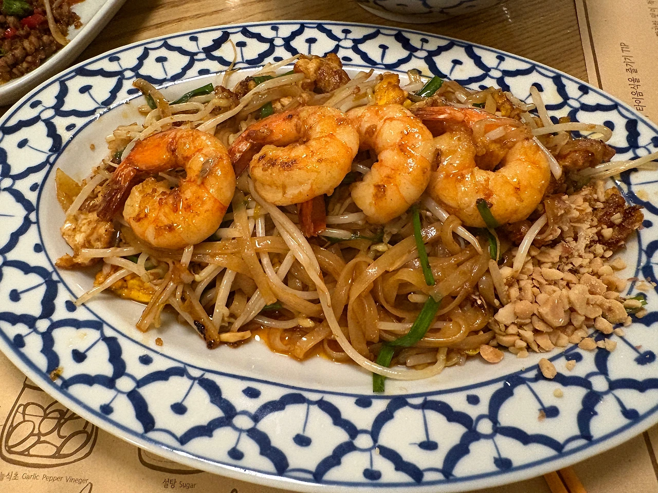 같이 삶아둔 쌀국수면은 쌈에는 어울리지 않아 팟타이에게로 넘겼다.