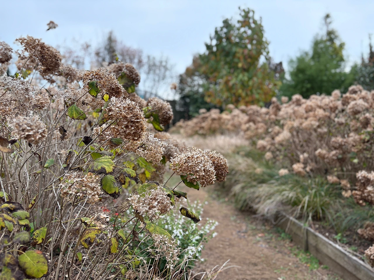 수국은 꽃잎이 떨어지지 않고 그대로 드라이플라워 된 모습이 아름답다.