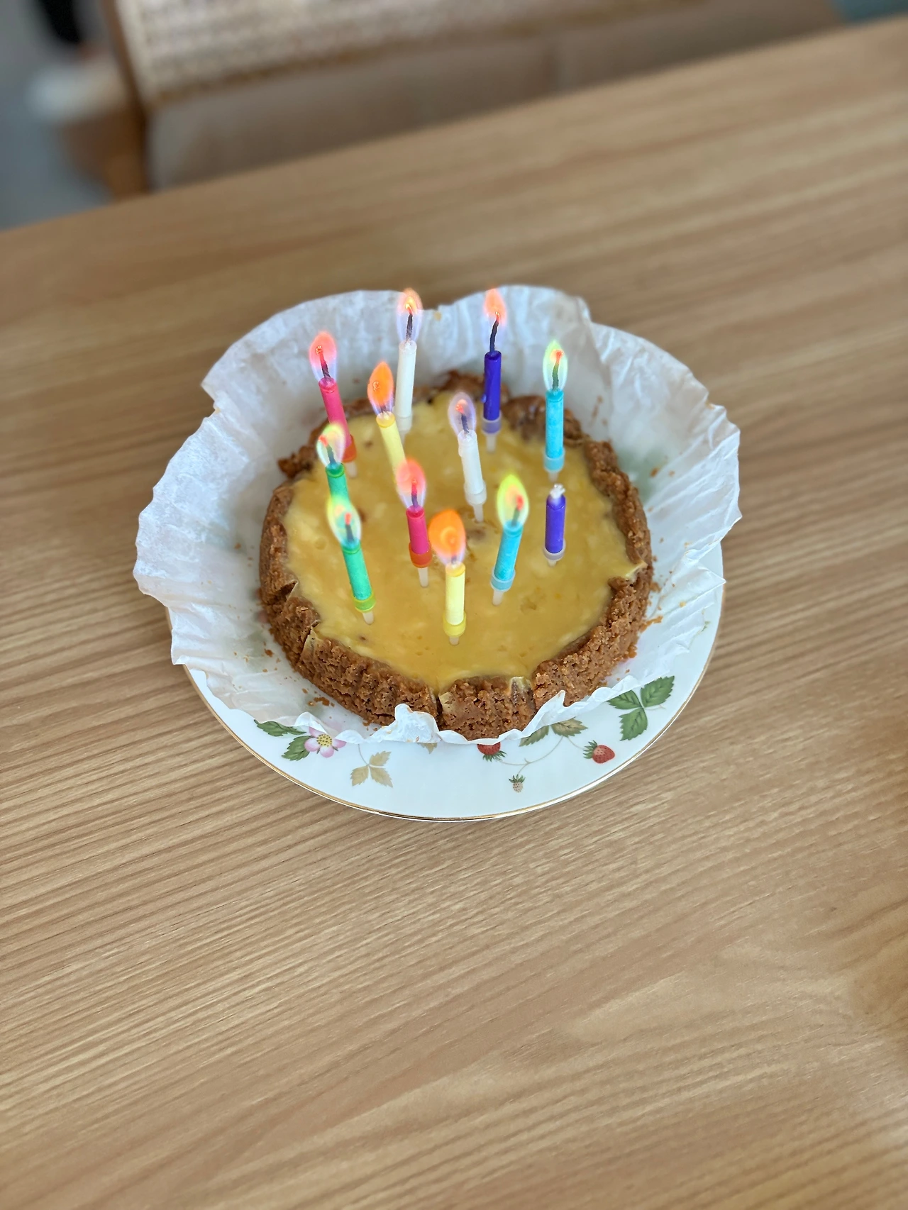 빔으러 쏜 귀여운 생일메시지, 손수만드신 치즈타르트와 컬러초들.