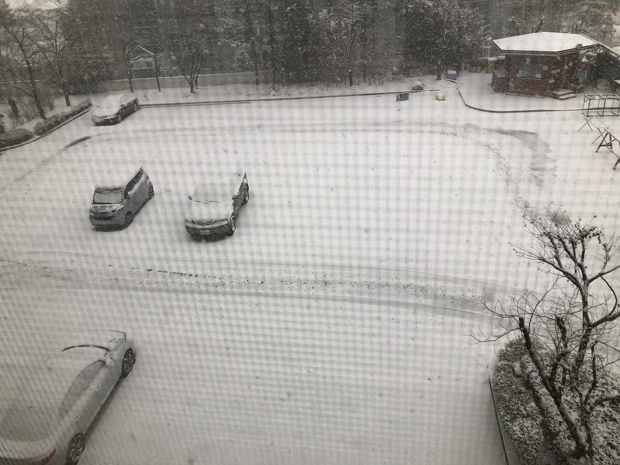 창으로 바라보는 바깥풍경이 하얗다.