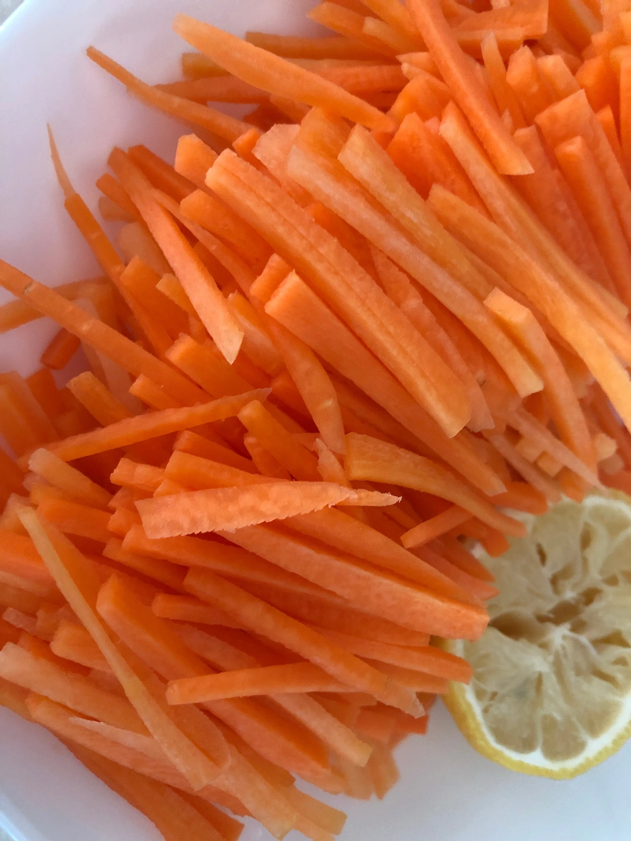 나의 당근라페 레시피는 채썬 당근에 소금, 매실청, 레몬즙, 홀그레인머스타드, 올리브유를 넣어 섞은 다음 냉장고에 넣어둔다.