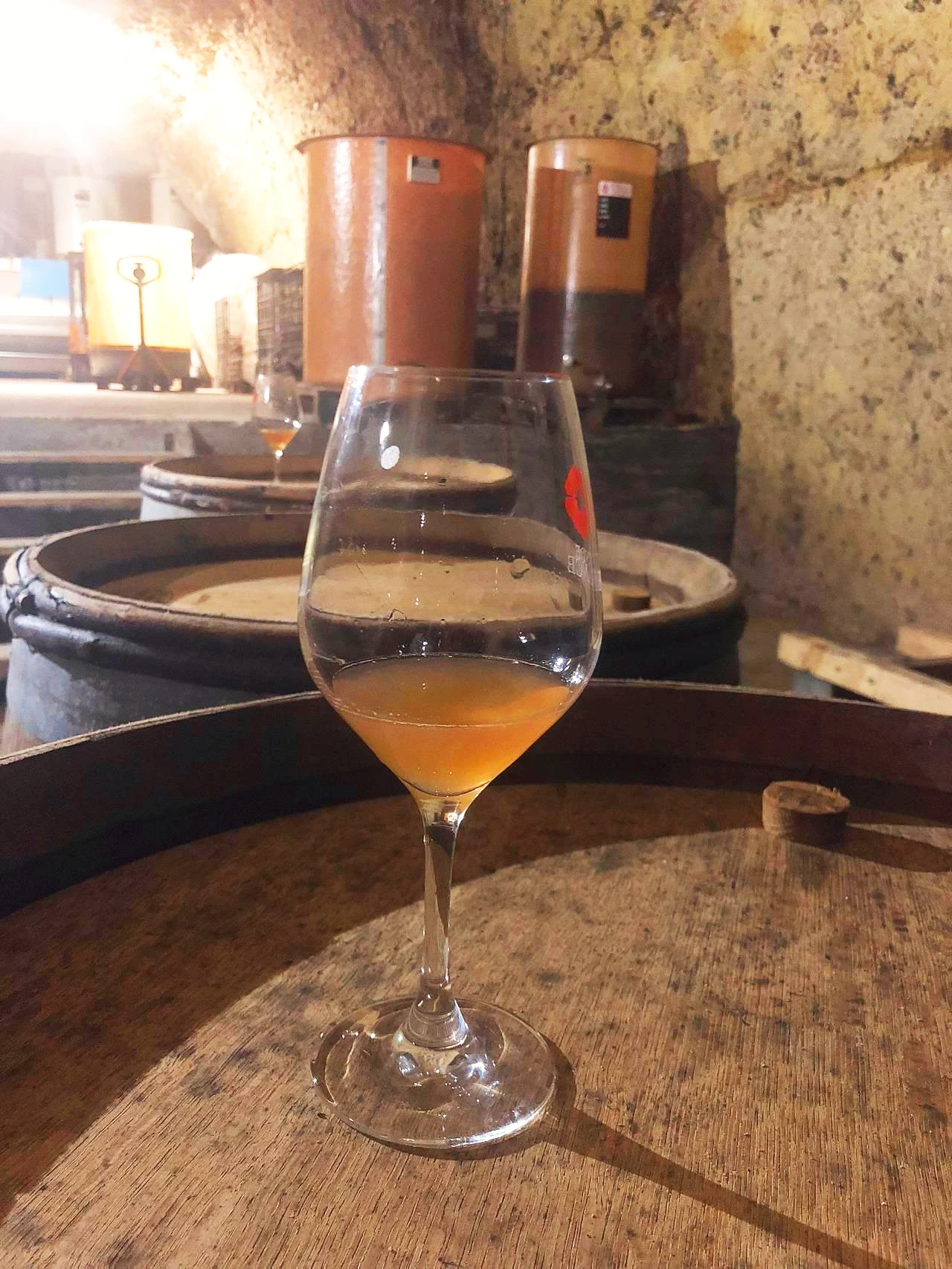 동굴 입구에는 올해 수확한 포도즙을 추출하고, 와인의 최종 품질의 산화를 미리 방지하기 위해 발효 전 포도즙을 최대로 산화시켜 산화 화합물들을 제거하는 Hyperoxidation을 진행하고 있었는데,