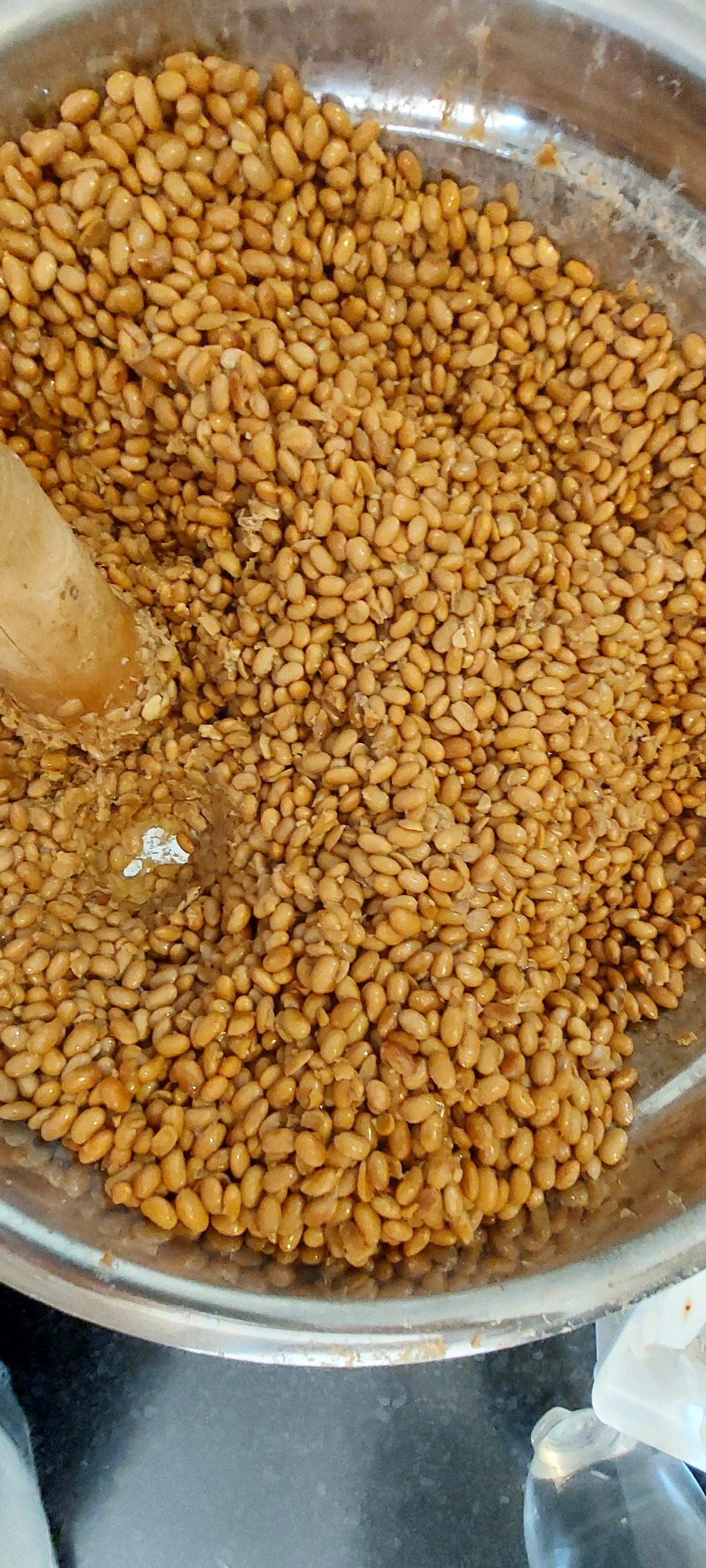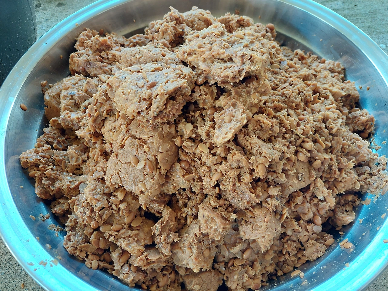 2020년에는 첫 실습이라서 그런지 정상 기대량에 비해 반 정도 나왔다. 메주 발효과정에서 검은 곰팡이가 피면 된장이나 간장의 쓴맛의 원인이 된다는 영상을 보고 검은 부분을 모두 떼어 냈기 때문이었다.
