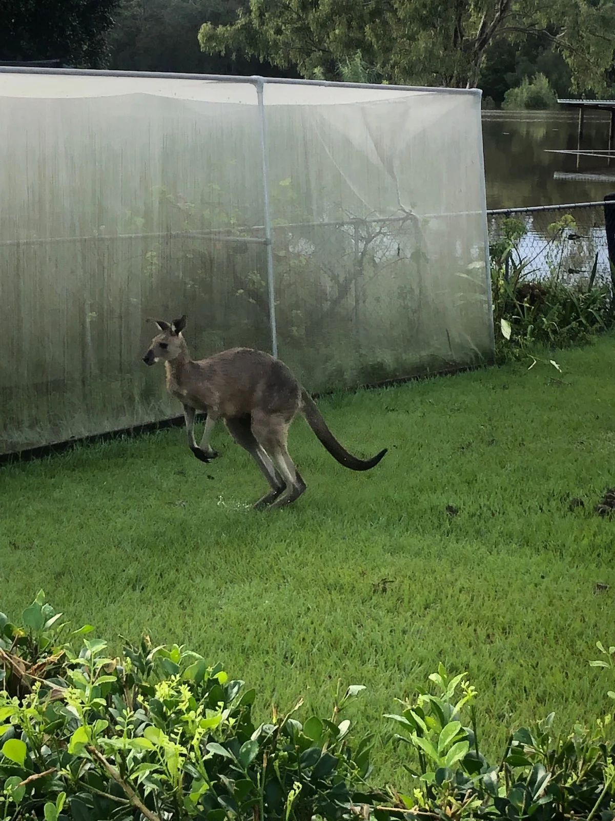 한 친구는 뒷마당이 백 미터 정도는 되어 보이는데 끝에서부터 물이 차오르기 시작했다며 ‘집까지 물이 오기 전에 비가 멈추겠지’라고 말했다. 친구 집에 키우는 닭들과 양들이 갈 곳을 잃어 본채까지 올라와서 앞마당으로 모두 피신시켰다고, 집을 잃은 것은 야생동물들도 마찬가지였다. 갈 곳이 없는 캥거루들이 이리저리 뛰어다니고 그야말로 난리도 아니었다.